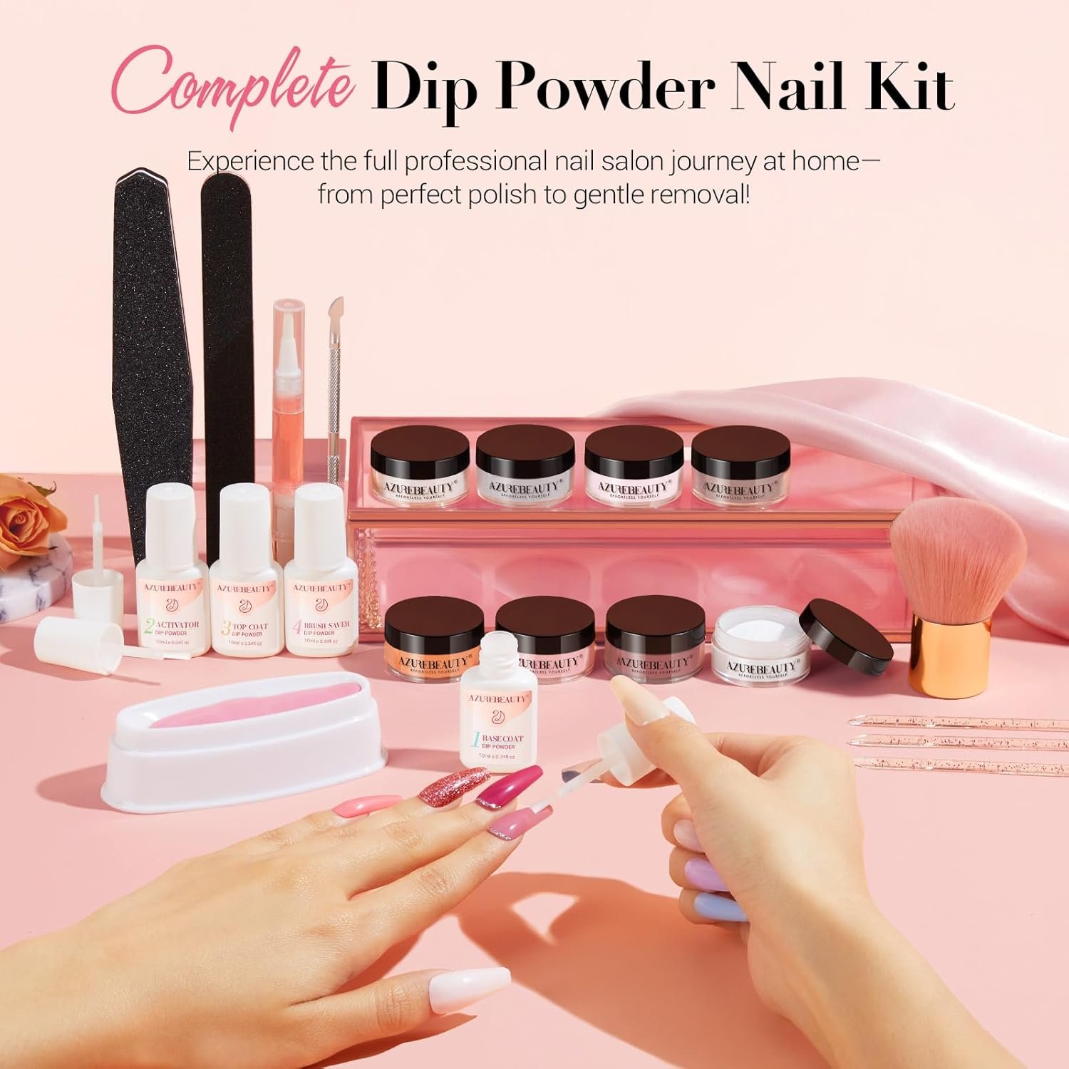 【Superior Quality & Long Lasting】 AZUREBEAUTY nail dip powder kit is long-lasting and anti-chipping, anti-peel off. The color is full and natural-looking, light, and has an impeccable shine finish. It can keep the nail art gorgeous and shiny for more than about 28 days with proper application. This makes it the first choice for busy people. (REMINDER: The affection of dip powder may show differently in different people, 2~3 base coats while using will be the best.)