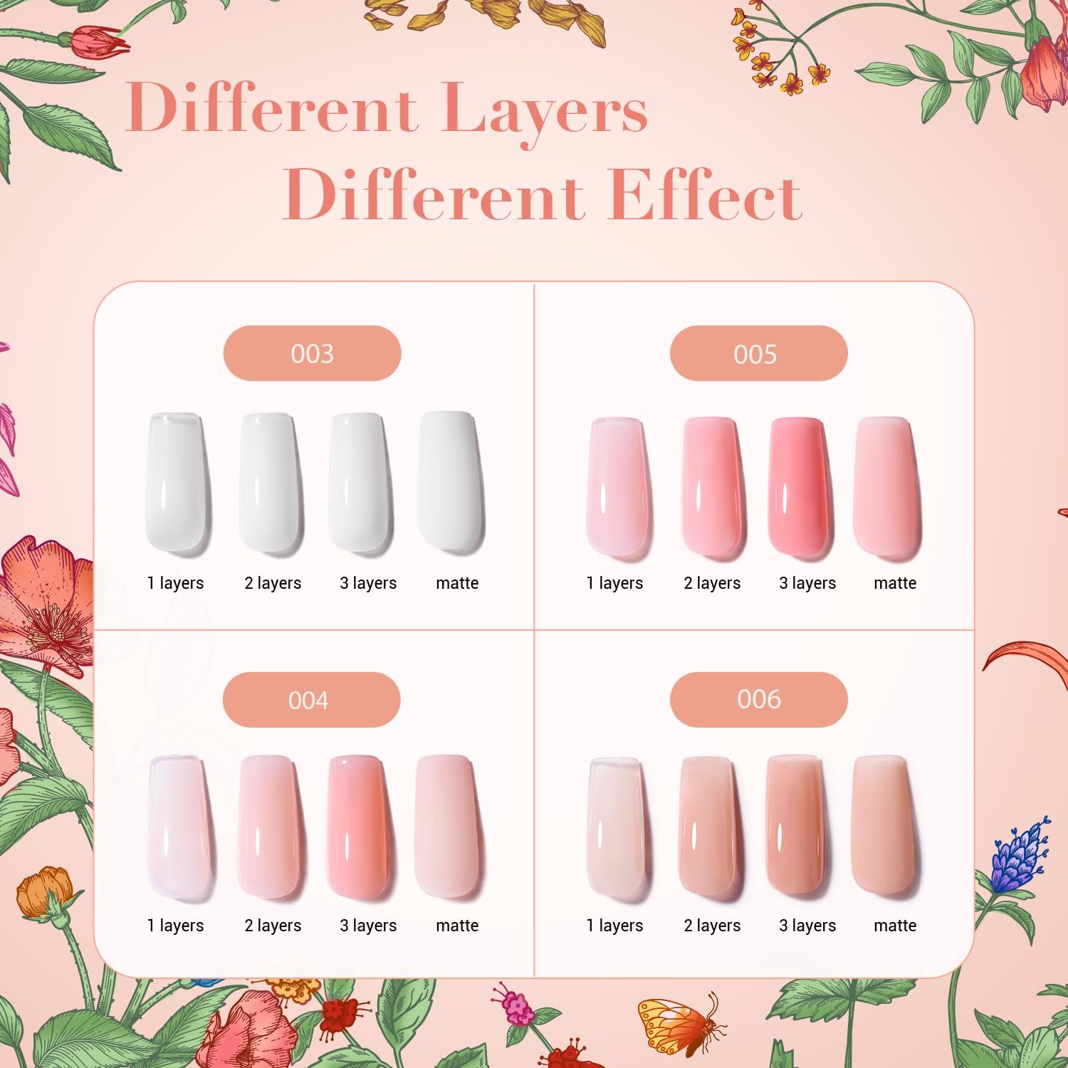 High Gloss Shine & Multiple Effects: Our Top Coat finish prevents scratches, chips, and smudges while increasing color saturation by 20%, making your nails shine more. Different layers show different nail effects, one layer will look jelly pink, two layers will deepen to create a beautiful pink, depending on your preference.