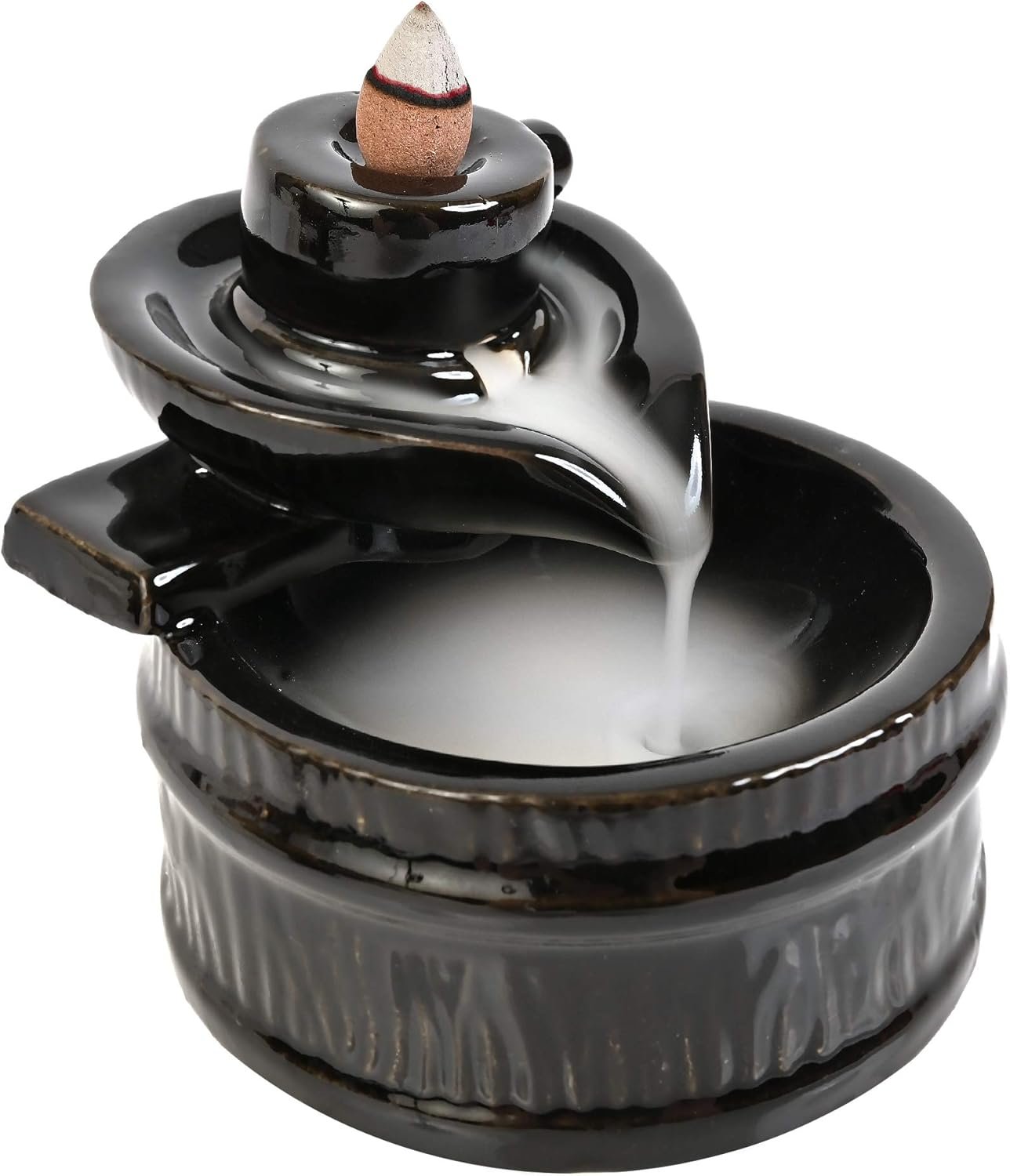 Backflow Incense Burner Black Ceramic Backflow Incense Holder – Creates Waterfall Smoke for Home Decor, Ornament, Aromatherapy, Meditation, Relaxation (Water Fall)