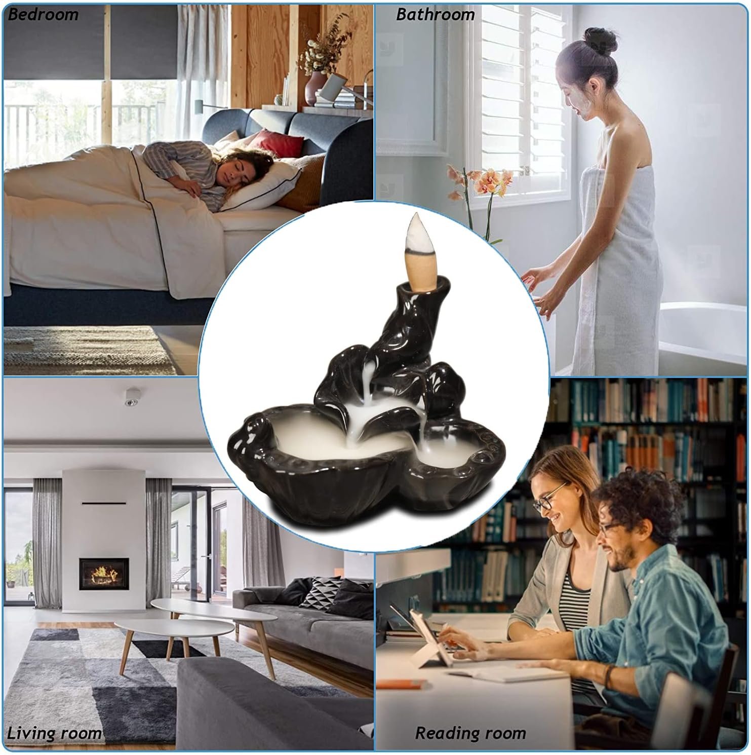 These waterfall backflow incense holder burners are suitable for many occasions. Lit an incense, a good smell of incense before the guests visit, it’s a courtesy. For yourself, refreshing, maintaining a pleasant body and mind, improving work efficiency.