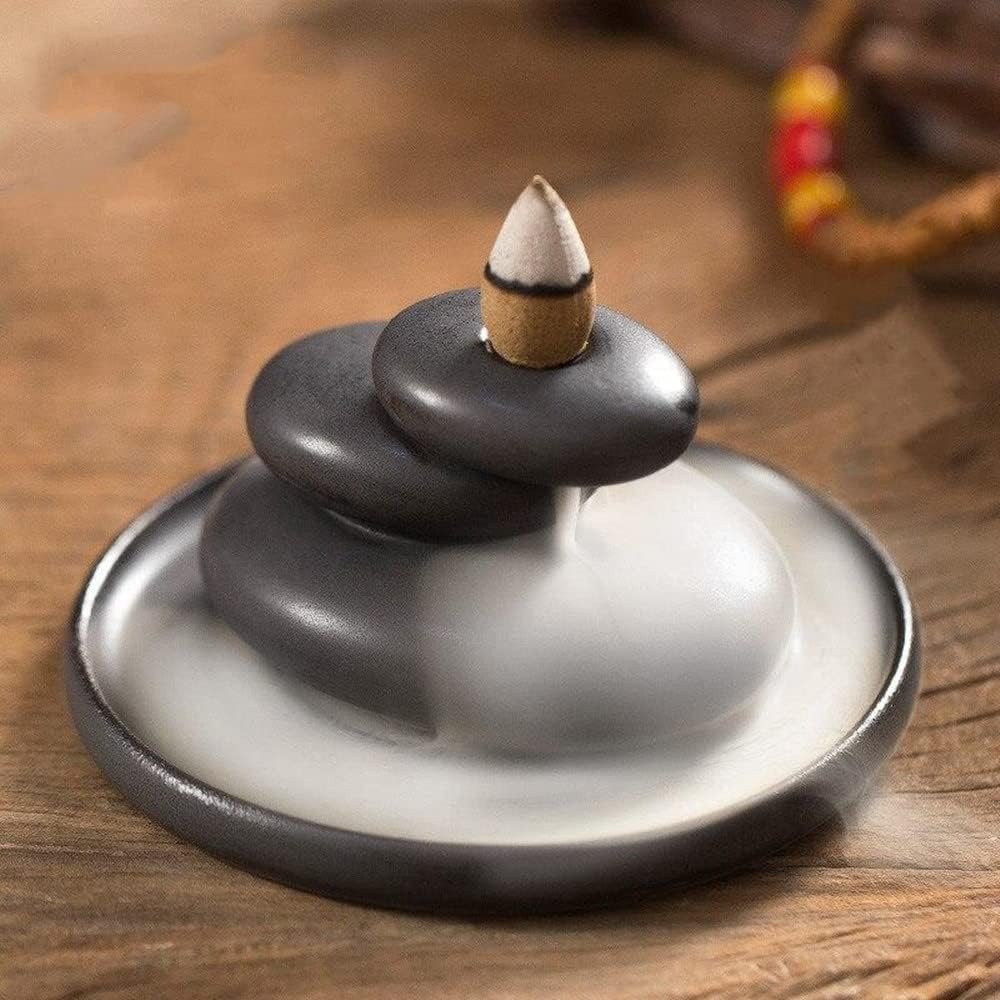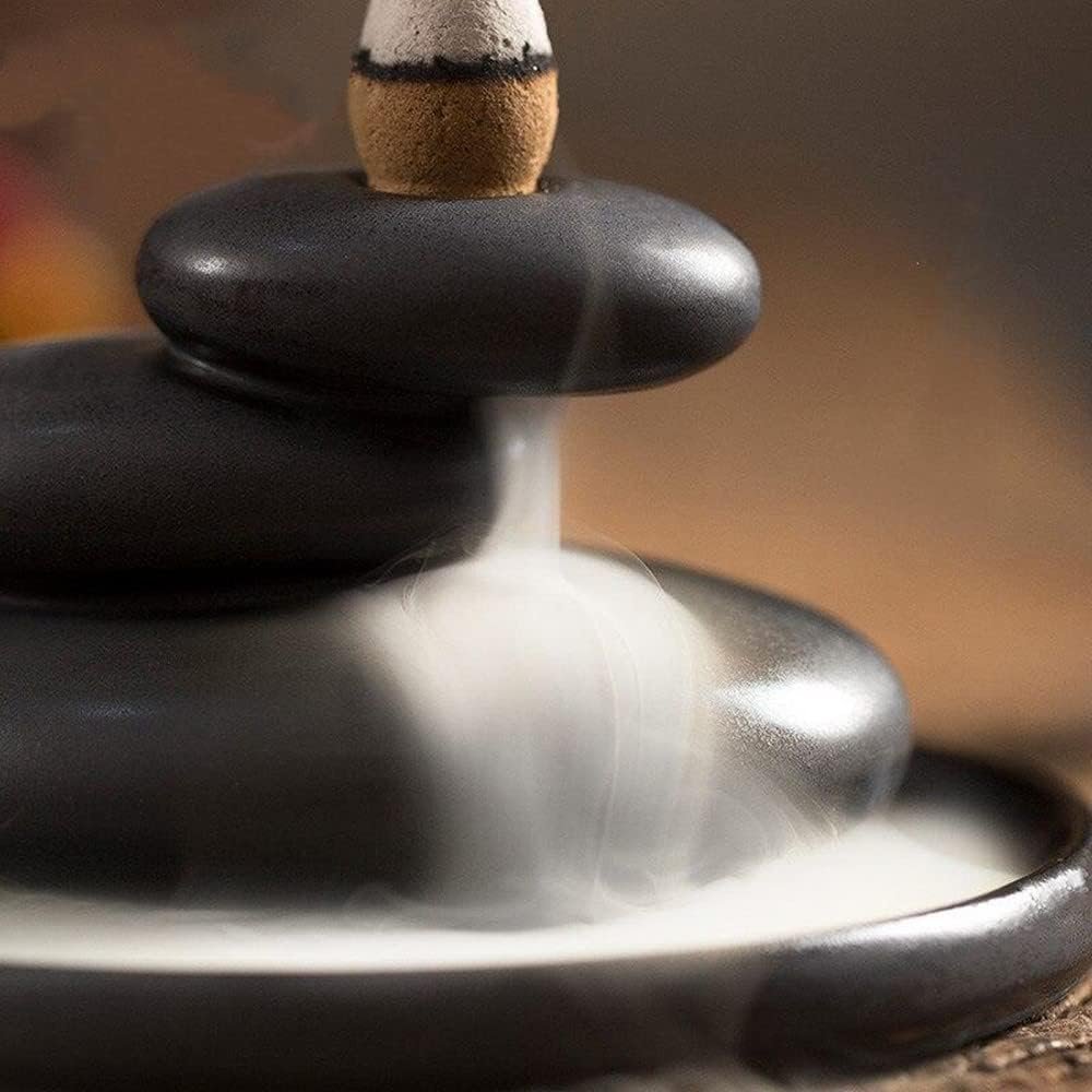 Backflow Incense Holder, Ceramic Stacked Rock Zen Stone Waterfall Backflow Incense Burner, Home Decor for Yoga Meditation Relaxation