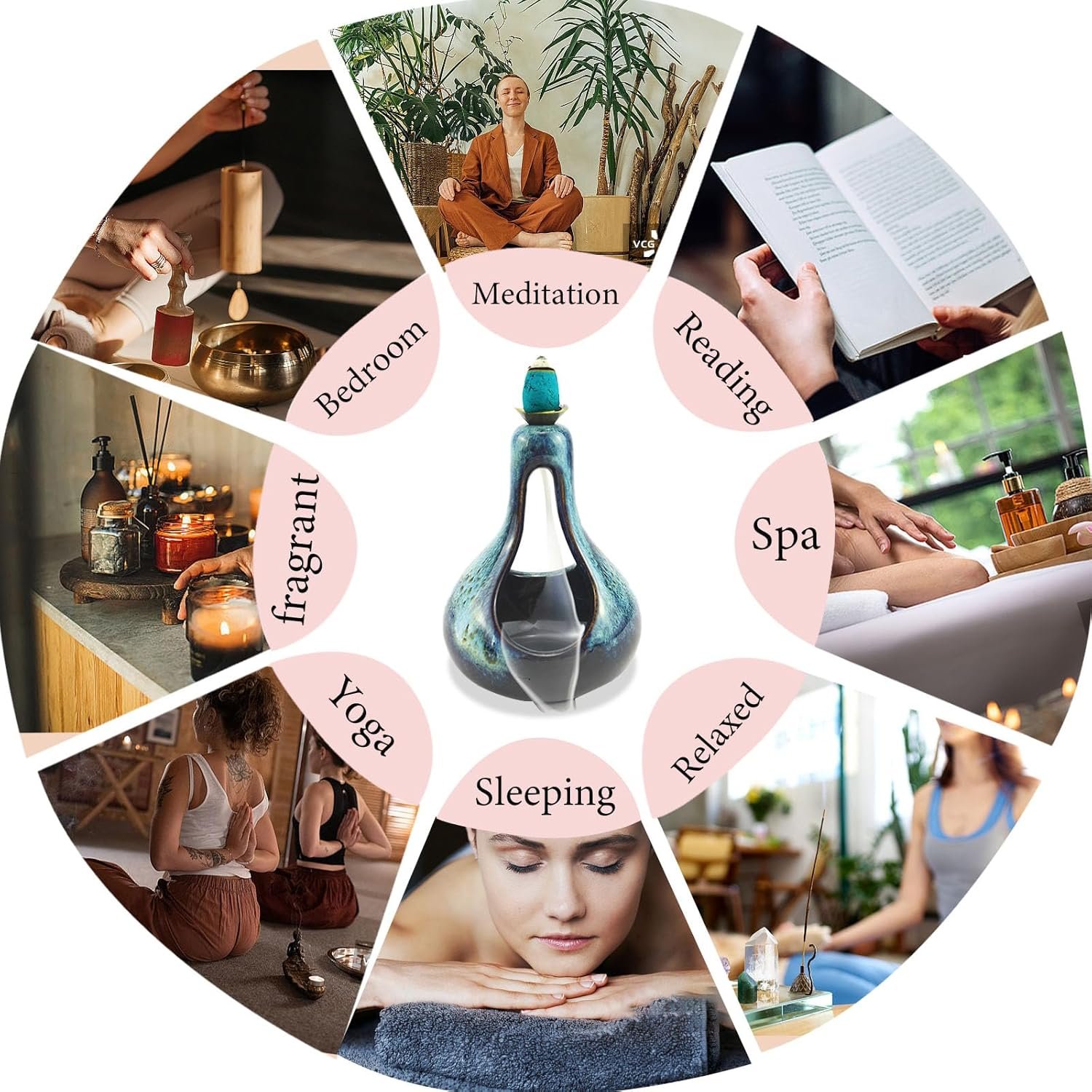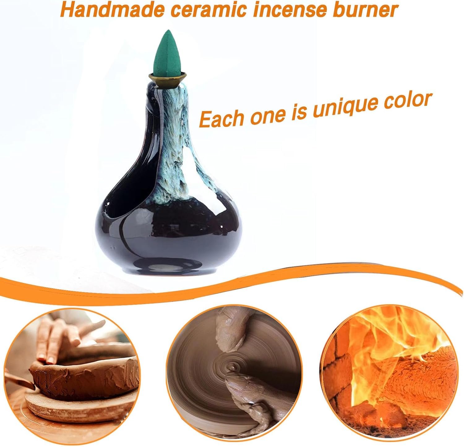 ♨QUALITY ASSURANCE:This incense burner set includes waterfallcones, allowing you to enjoy a variety of scents and create a tranquil atmosphere in any room.Any dissatisfaction with the purchase will be responded with a refund or a replacement with no questions
