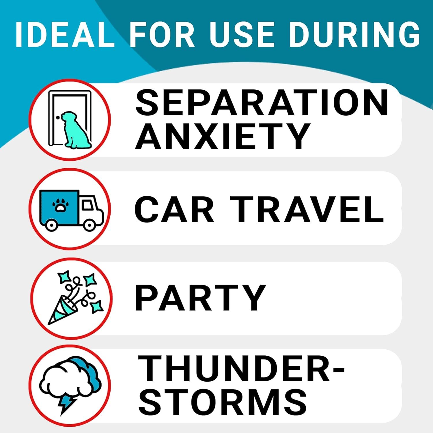 Effective Calming Supplement – these calming treats help reduce symptoms of anxiety or stress such as growling, barking, scratching, chewing, licking, uncontrolled urination etc. Anti-anxiety treats are specially formulated to calm down your pet’s anxiety, aggression during separation, car rides, thunders, firework etc