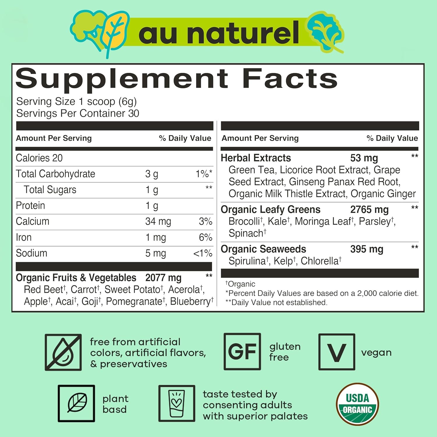 SERIOUSLY GOOD UNSWEETENED GREENS WITH NOTHING TO HIDE: Deliciously healthy daily greens, jam-packed with antioxidants and 23 superfoods for gut, immunity, and no-bloat benefits. We’ve got the good stuff covered: USDA Organic Certified, vegan, kosher, non-GMO. And we’ve ditched the nonsense – no artificial colors, artificial flavors, preservatives, added sugar, soy, dairy, or gluten. Seriously good for a reason.