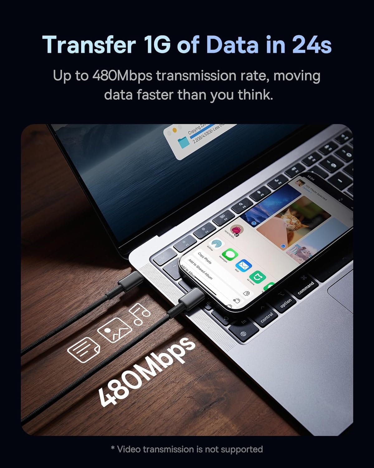 【Broad Compatibility】This USB C cable fast charging supports most fast charging protocols and can charge USB-C phones, tablets, and laptops, including the latest MacBook Pro/Air and iPad Pro, at maximum speed. (Note: For data transfer only, not for video.)