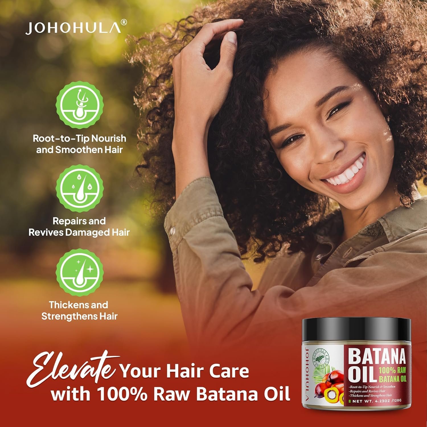 100% Pure Batana Oil – A natural, raw, and unrefined botanical extract that strengthens and promotes hair growth, perfect for preventing hair loss and repairing dry, frizzy, damaged, split, and thinning hair.