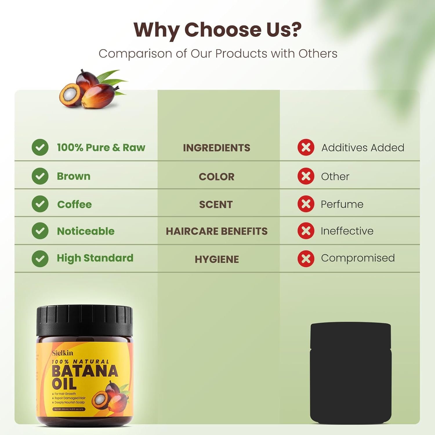 PURE CARE FOR YOUR HAIR: Enjoy chemical-free hair care with our batana oil, free from any additives or chemicals, ensuring pure nourishment for your hair. Our batana oil for hair growth is sourced from Honduras, extracted from Elaeis oleifera nut