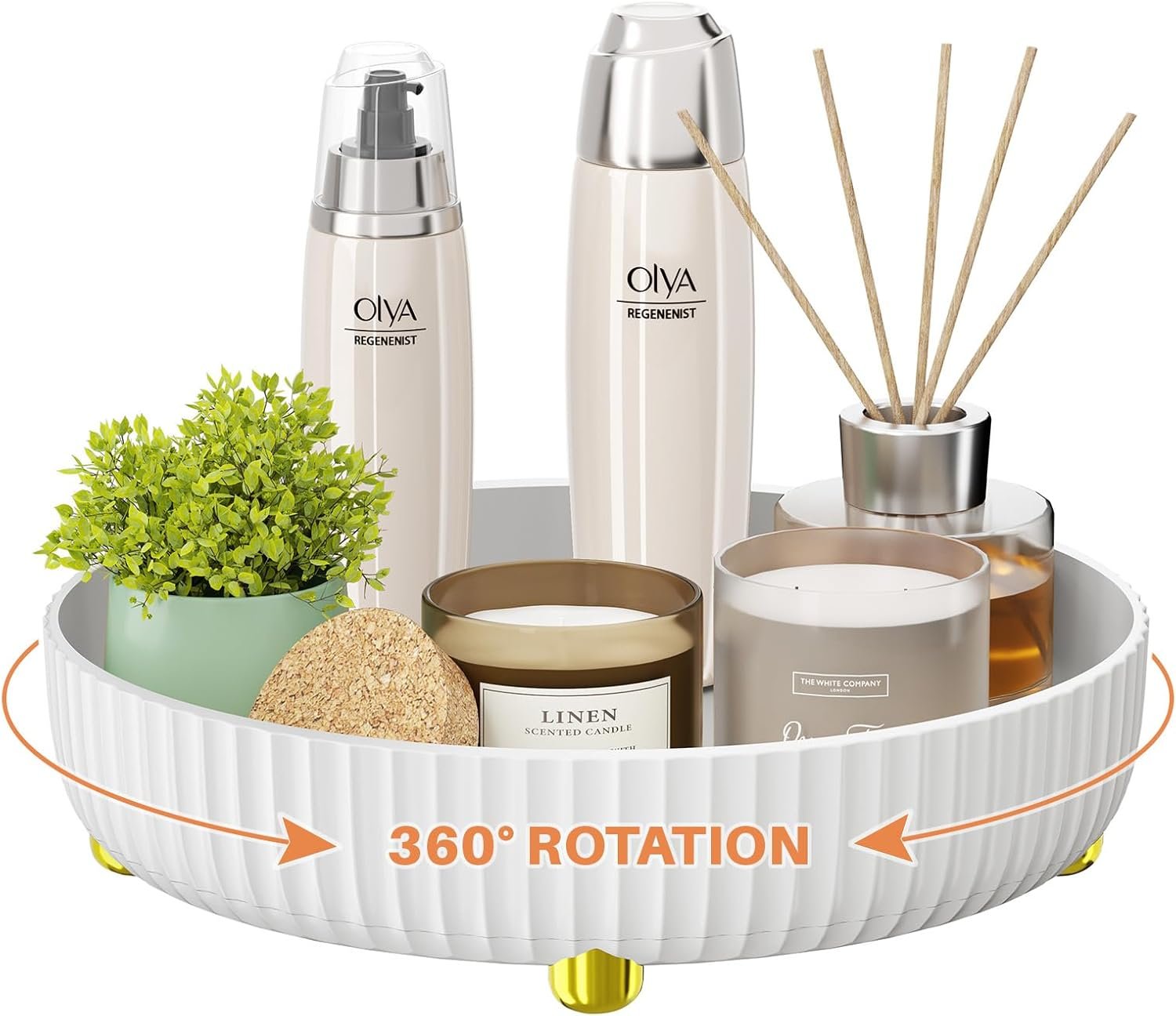 【Convenient Rotating Function】Effortlessly access all items by rotating the tray,eliminating the need to move the entire organizer,enhancing usability and efficiency