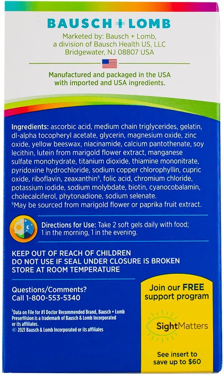 Bausch & Lomb PreserVision Eye Vitamin Mineral, 100 Soft Gels (Pack of 2)