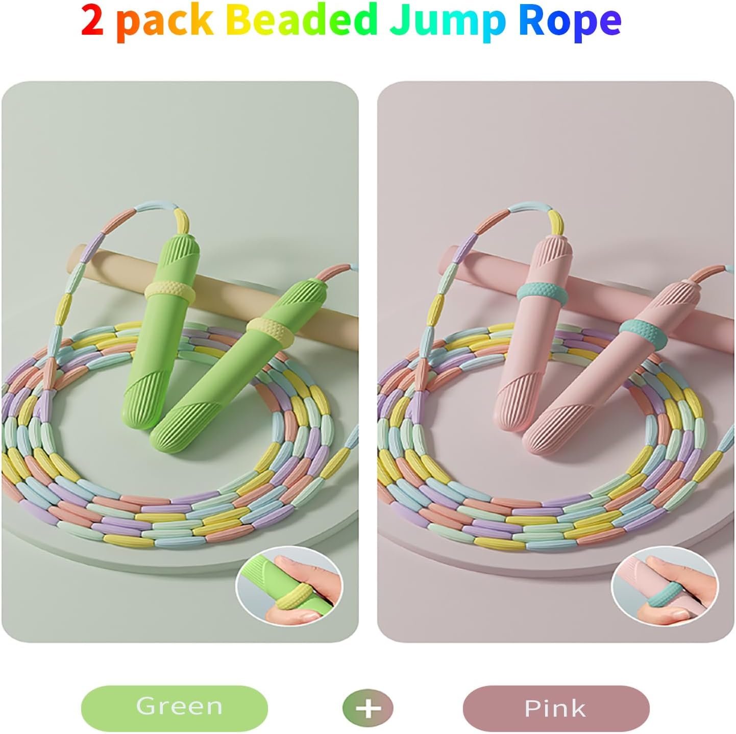 2 Pack Jump Rope for Kids: The package included 2 x beaded jump ropes. Experience the rhythmic sound of beads striking the pavement or floor with each jump. This toddler jump rope is a practical and healthy gift option for your kids or friends.