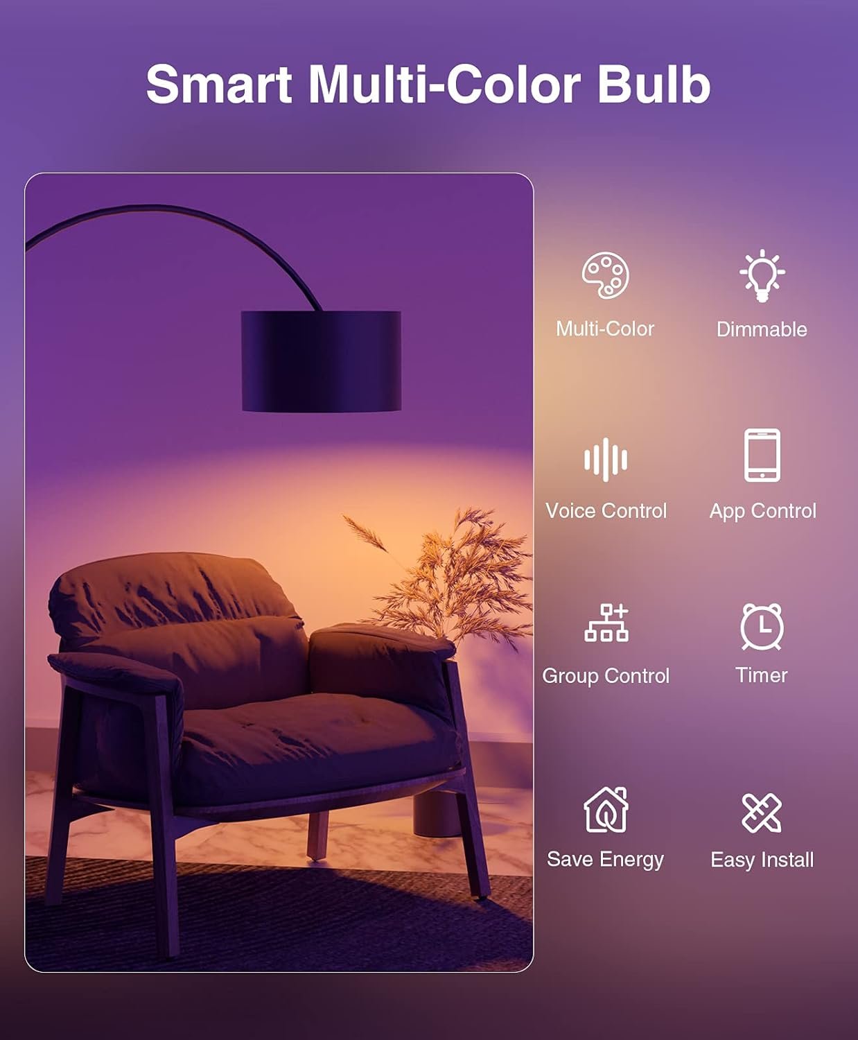 Energy Saving: Use the timer function of the smart bulb to automatically turn on or off per your schedule. Control your lighting to save on energy costs.