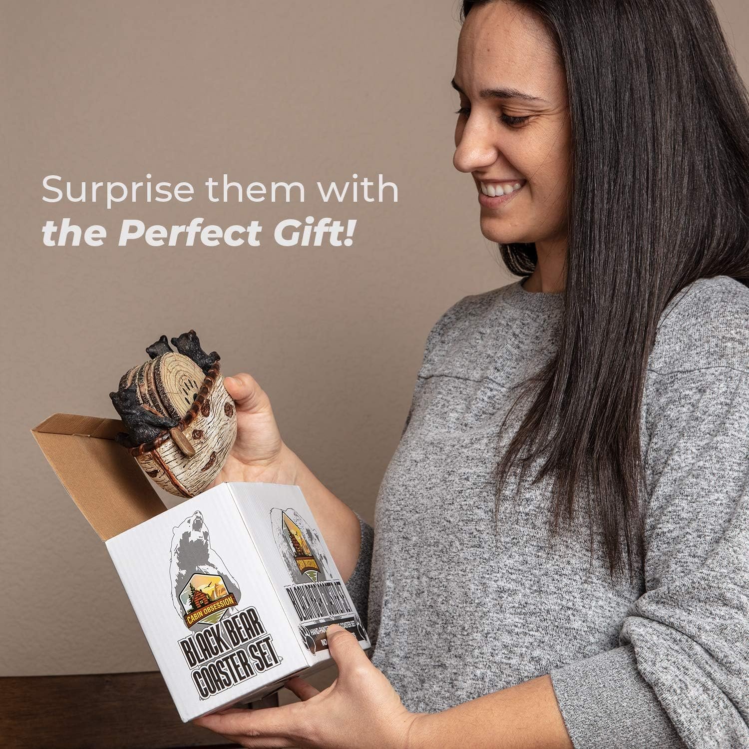 🐻 Makes the Perfect Gift – Our adorable bear coaster set makes the perfect housewarming gift for cabin decorations, rustic home decor, farmhouse decor, or simply as a unique coffee table feature for a man cave. Not to mention, the adorable canoeing bear characters make a great conversation piece!