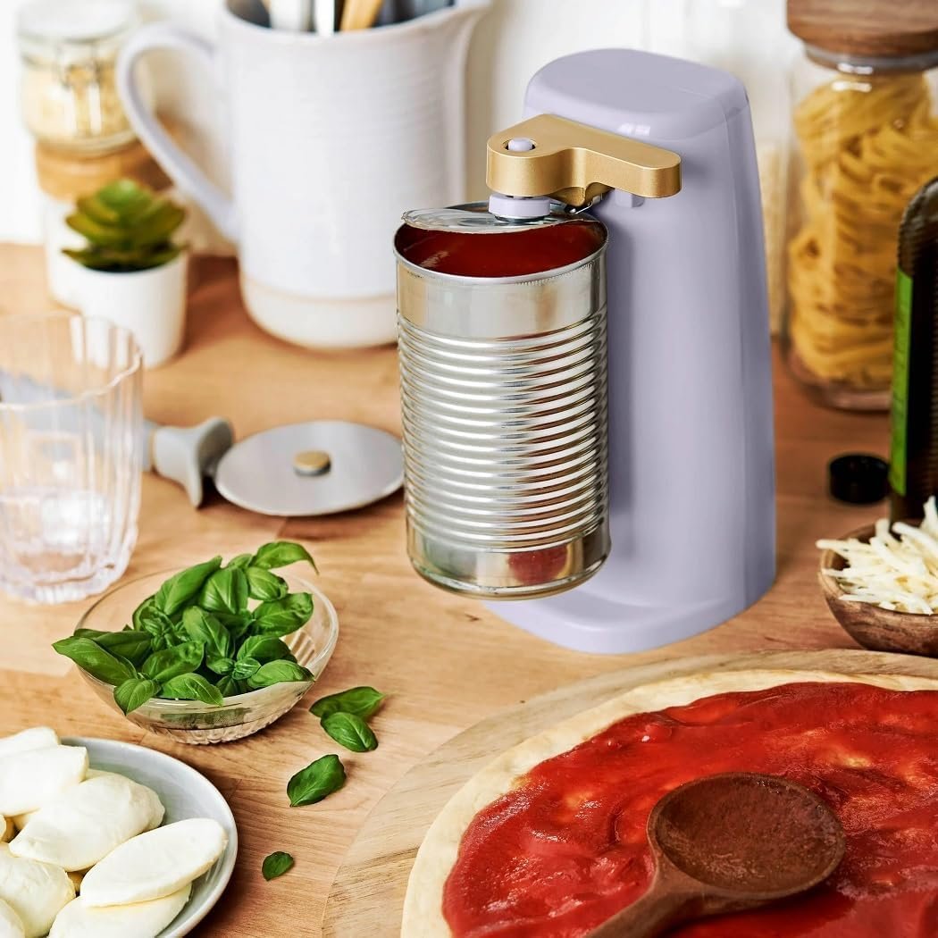 Stylish Design: Available in White Icing with signature gold accents, this can opener adds a touch of elegance to your kitchen counter.