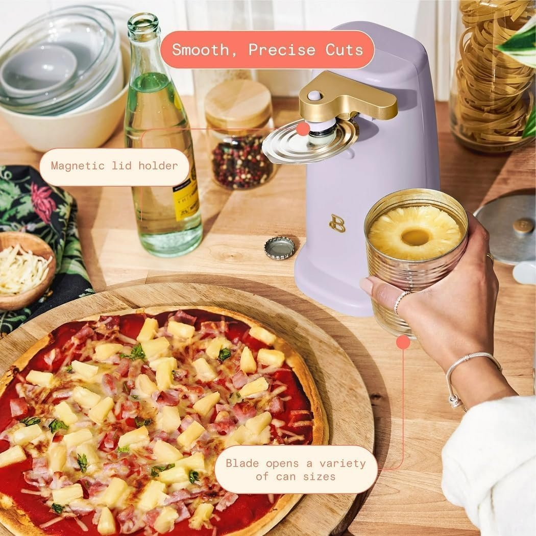 Effortless Can Opening: The Beautiful Easy-Prep Electric Can Opener features a stainless steel cutting blade and magnetic lid holder for easy opening of small, standard, and tall cans.