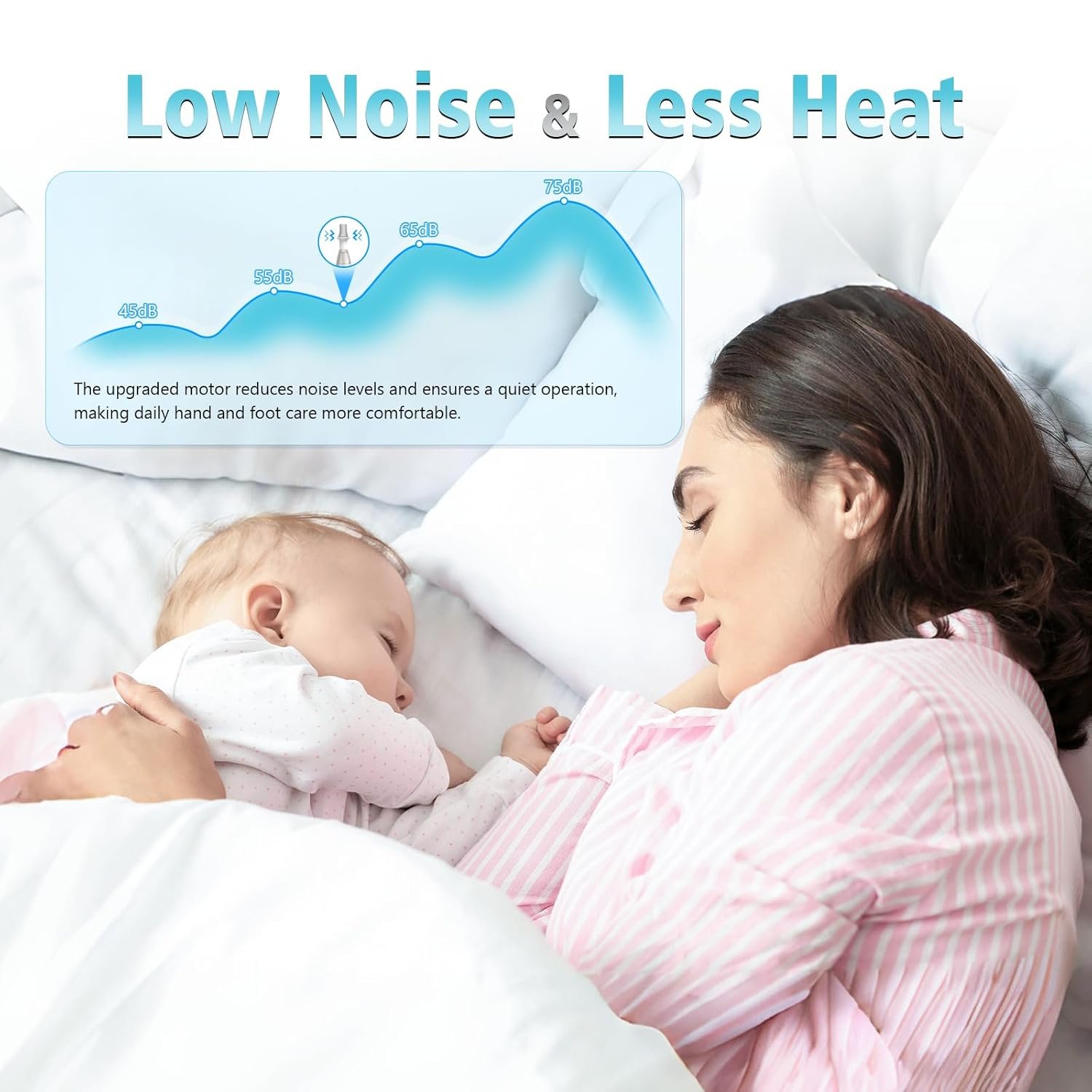 Low Noise Less Heat: After upgrading the smart motor, this nail drill machine enjoys less vibration, lower noise, and lower heat than other similar ones. Embedded LED light helps you see each part well and achieves precise, safe finger and toenail care.