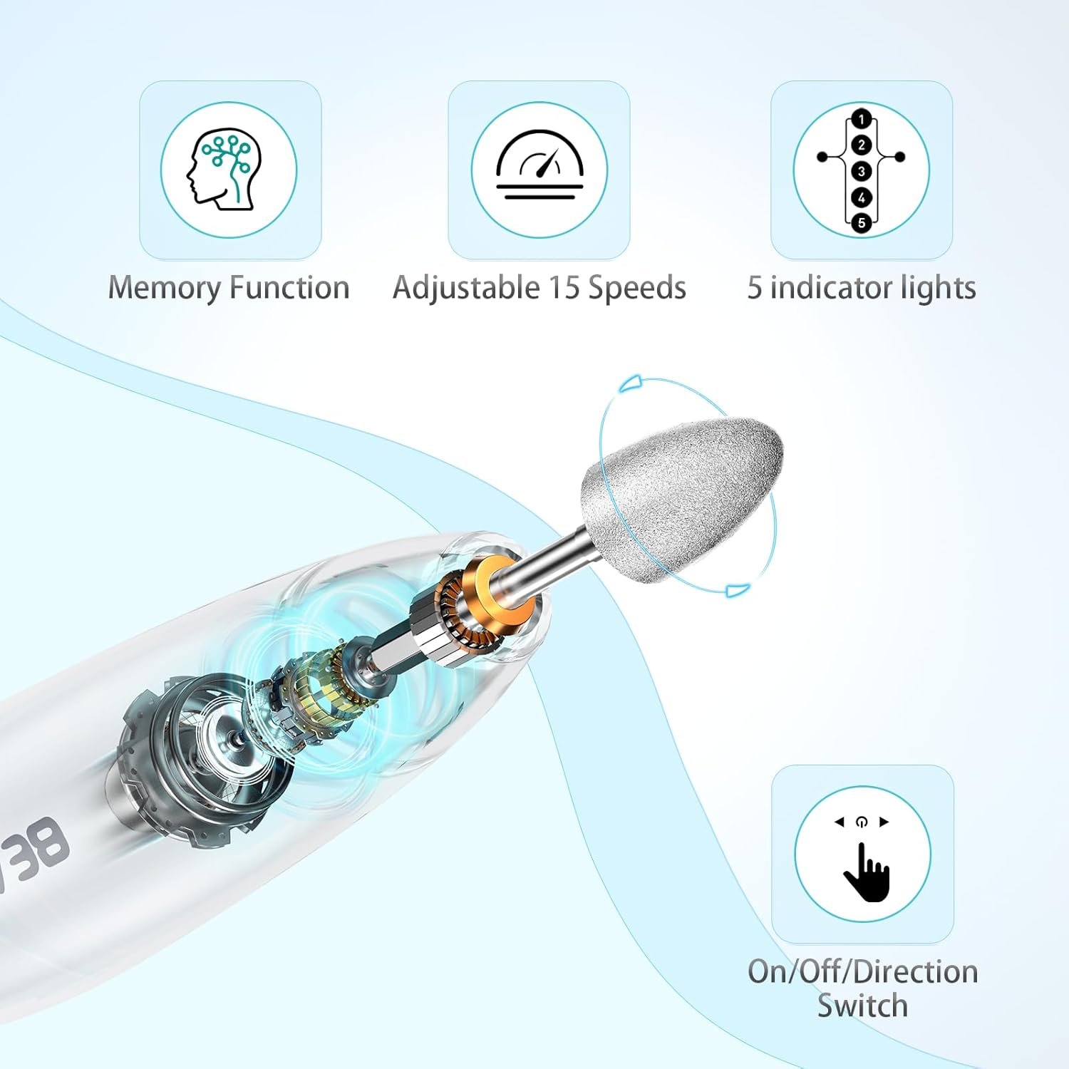 Adjustable Speeds & Direction: This electric file machine offers 15-speed settings for personalized mani or pedi needs; Clockwise and anti-clockwise are suitable for right-handed or left-handed