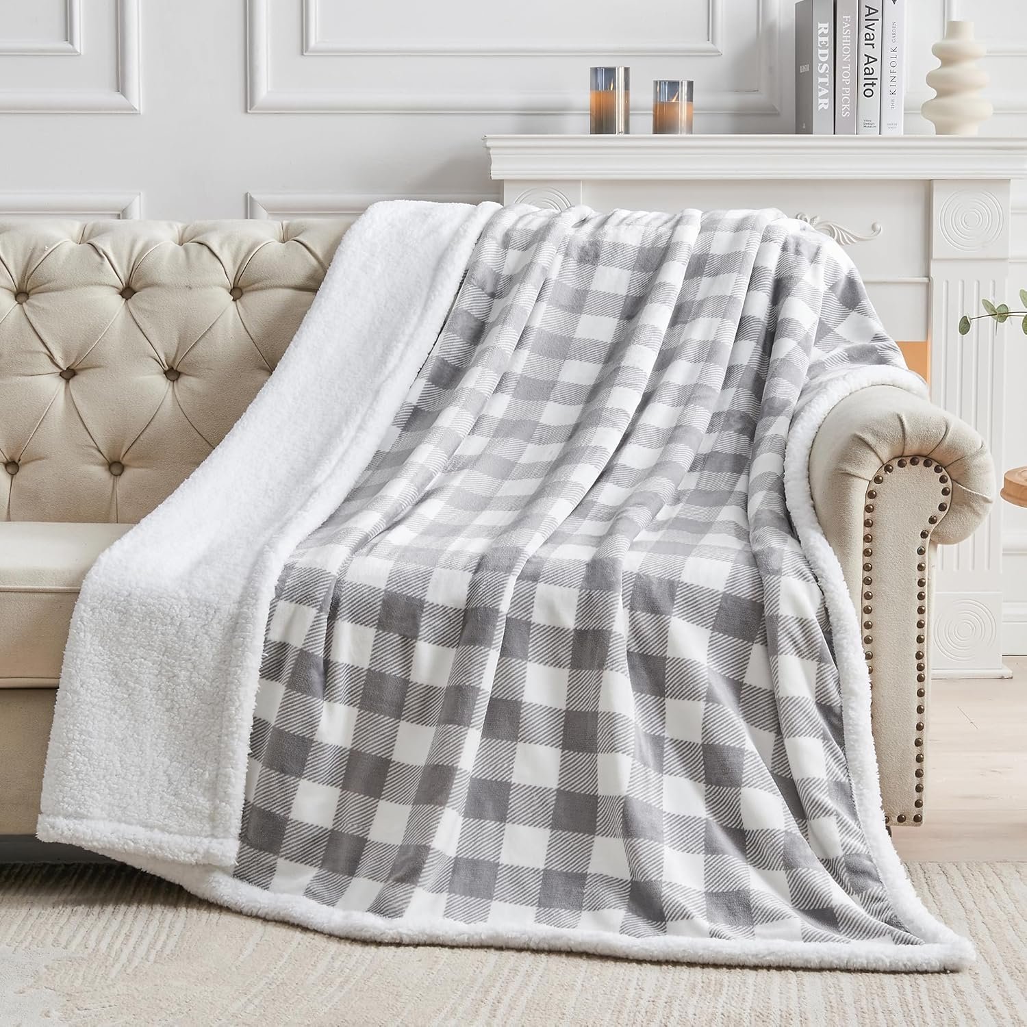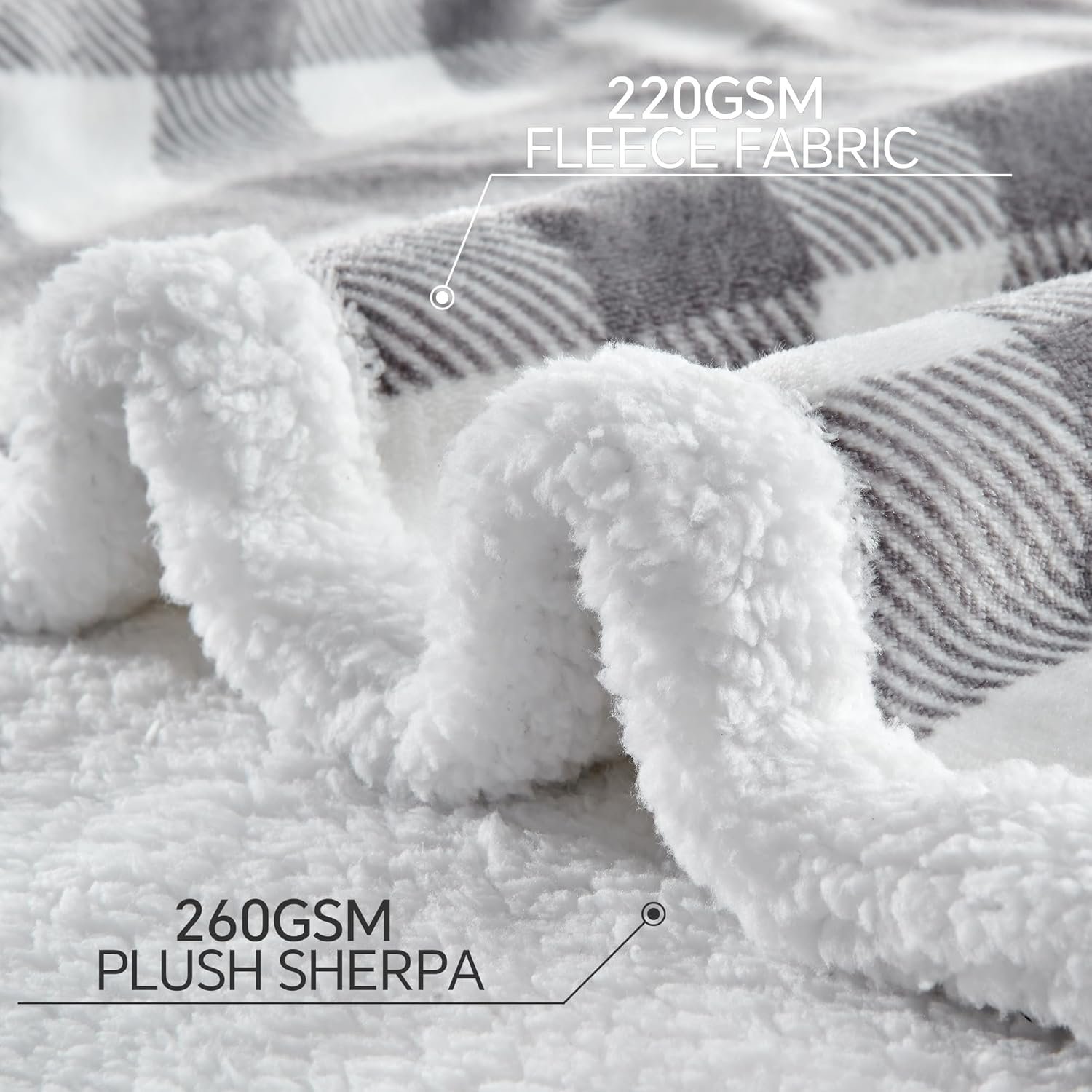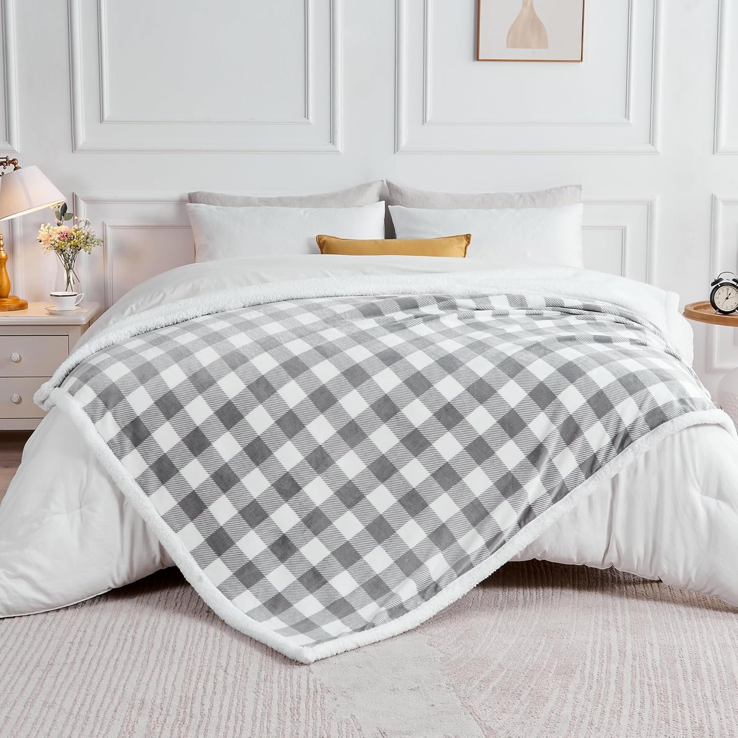 【ELEGANT FESTIVE ENHANCEMENT】:BEDELITE buffalo plaid sherpa blanket blends warmth and decorative charm, catering to your winter needs and gifting desires. The timeless grey and white checkered blanket brings a touch of classic elegance to your entire winter, encapsulating the essence of Christmas and New Year’s festivities.