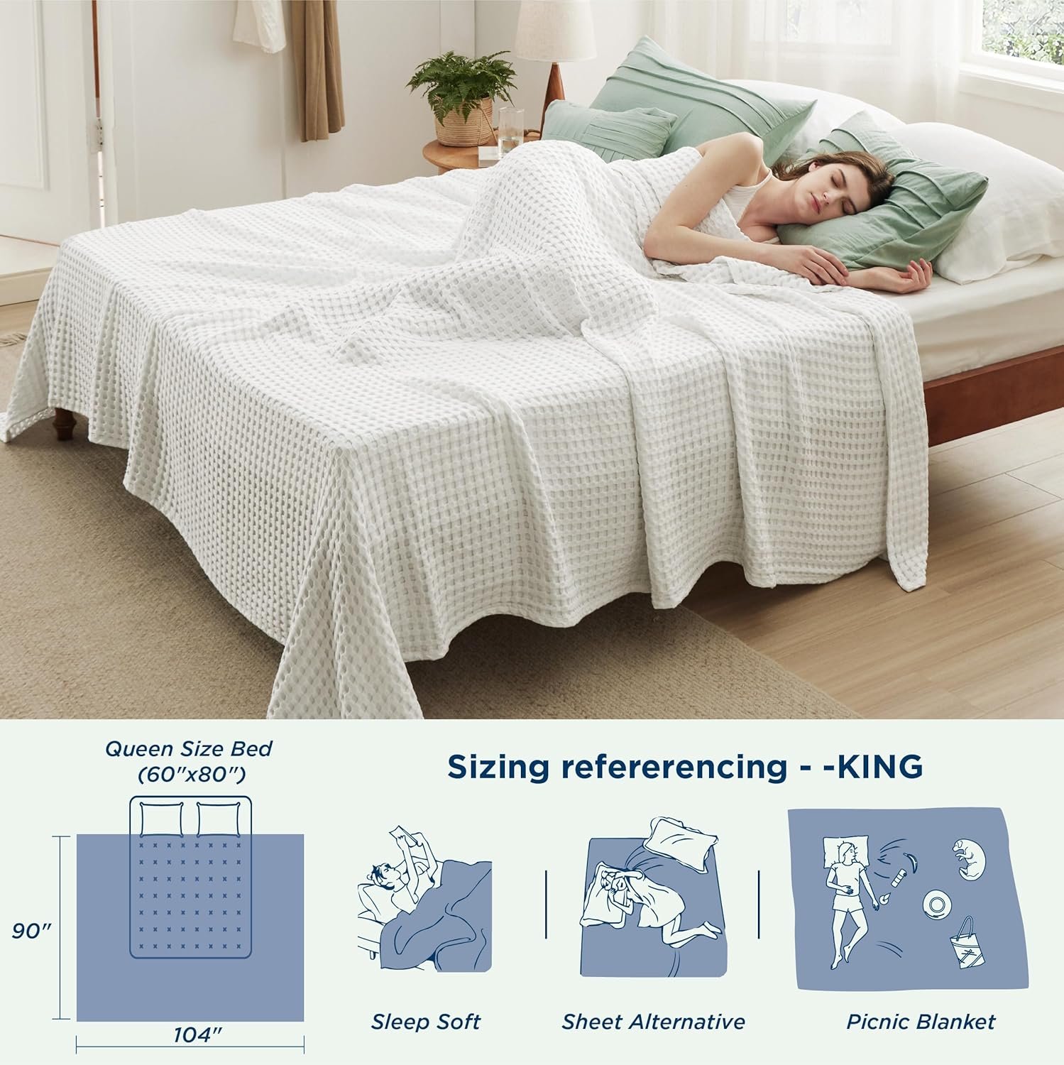 Elevated Classic Texture: The classic waffle blanket weave design and three-dimensional texture add sophistication to your bedroom, while the vintage look brings a touch of relaxed elegance to any space.