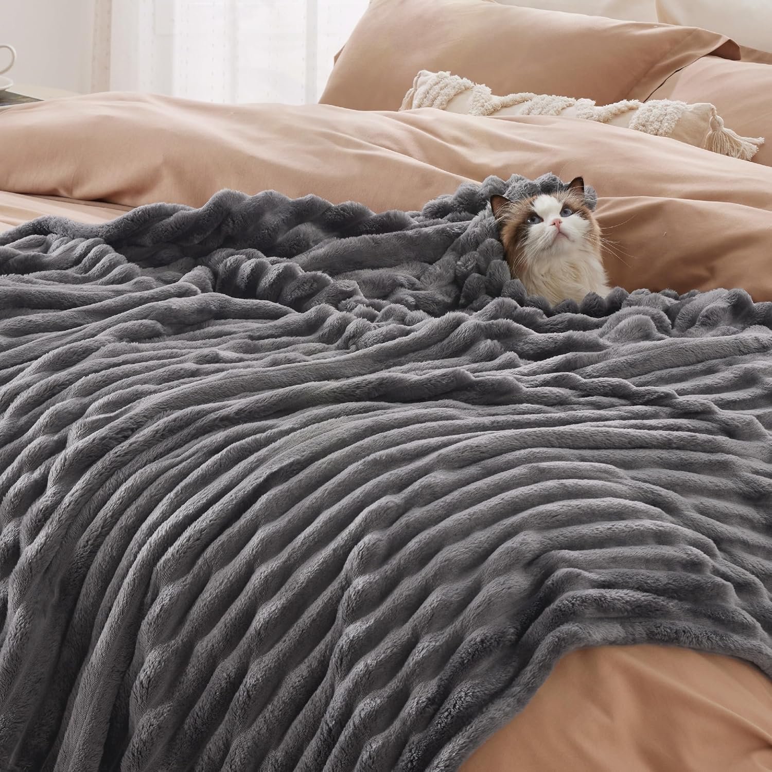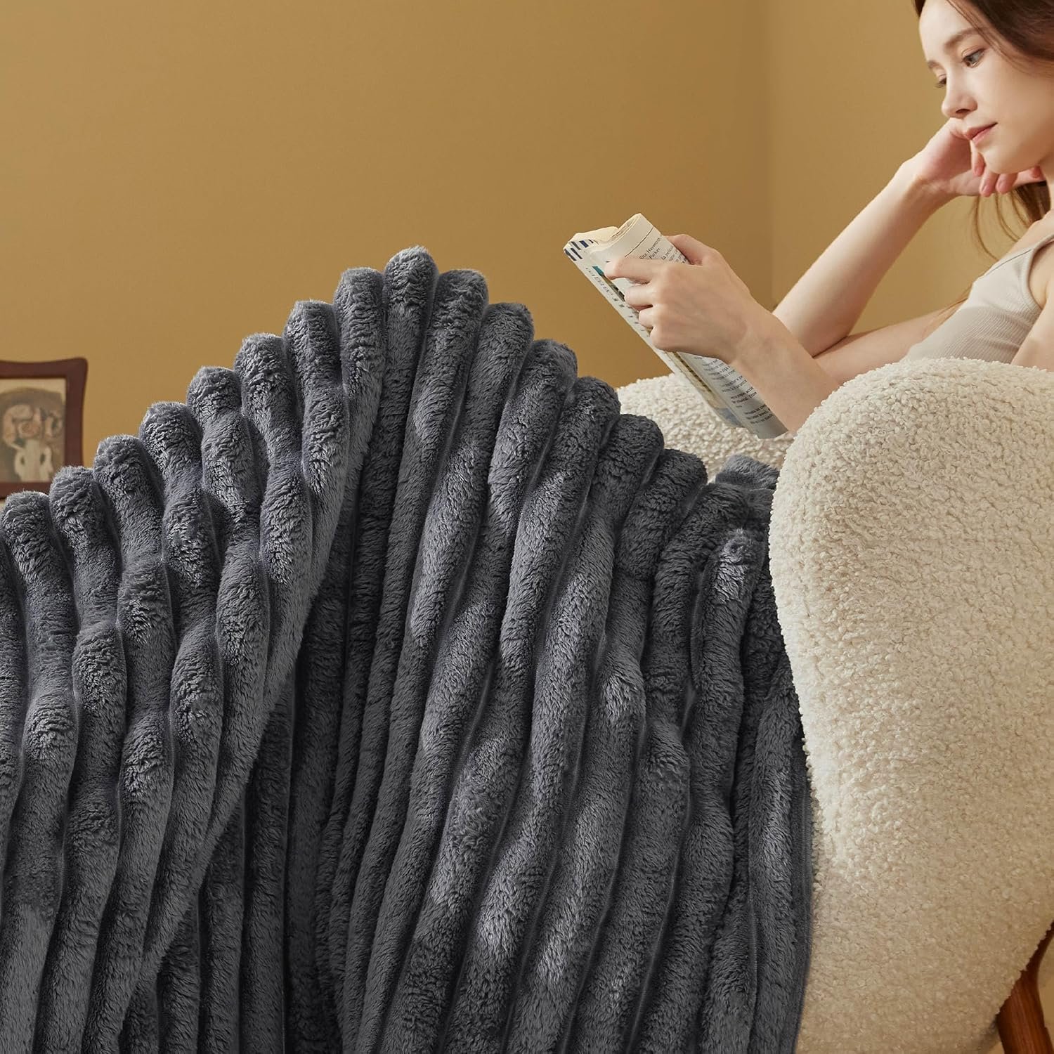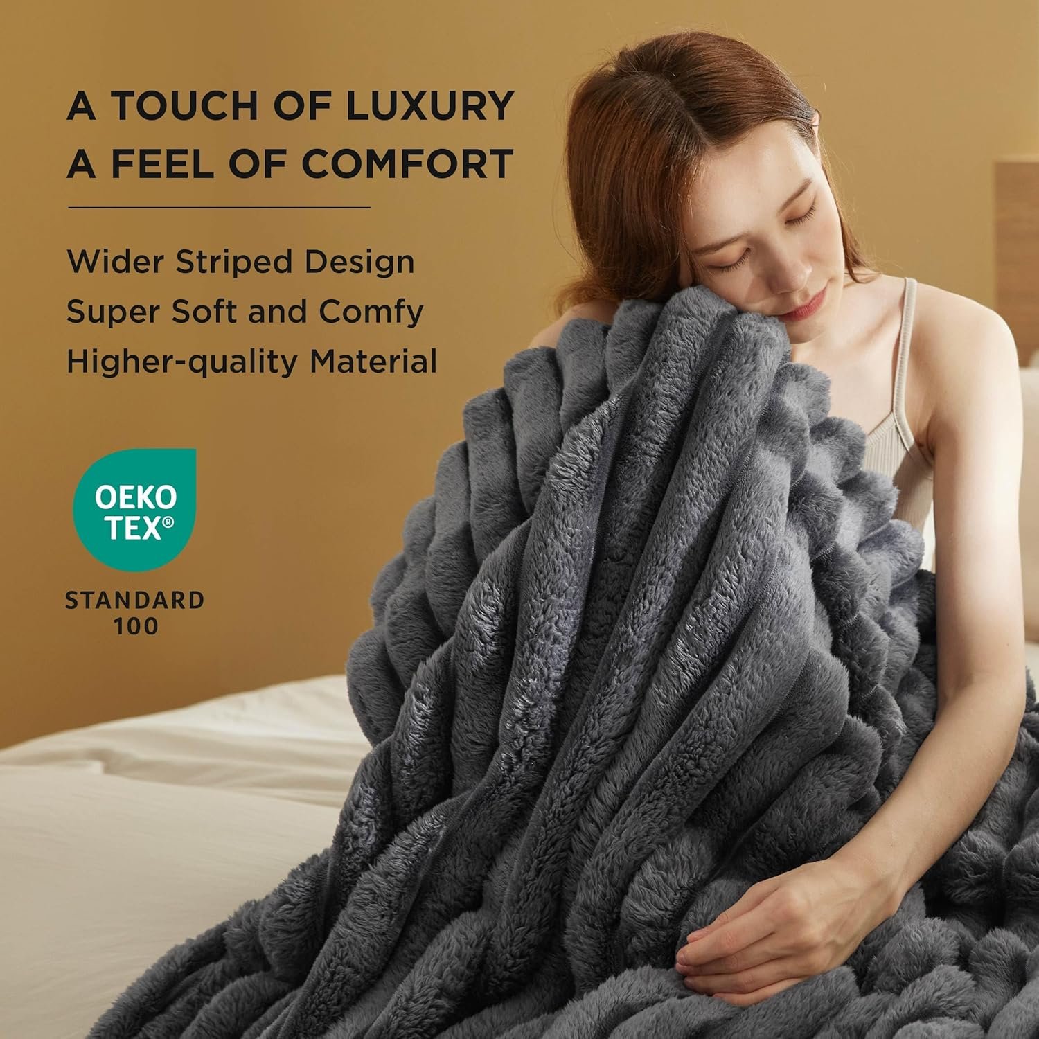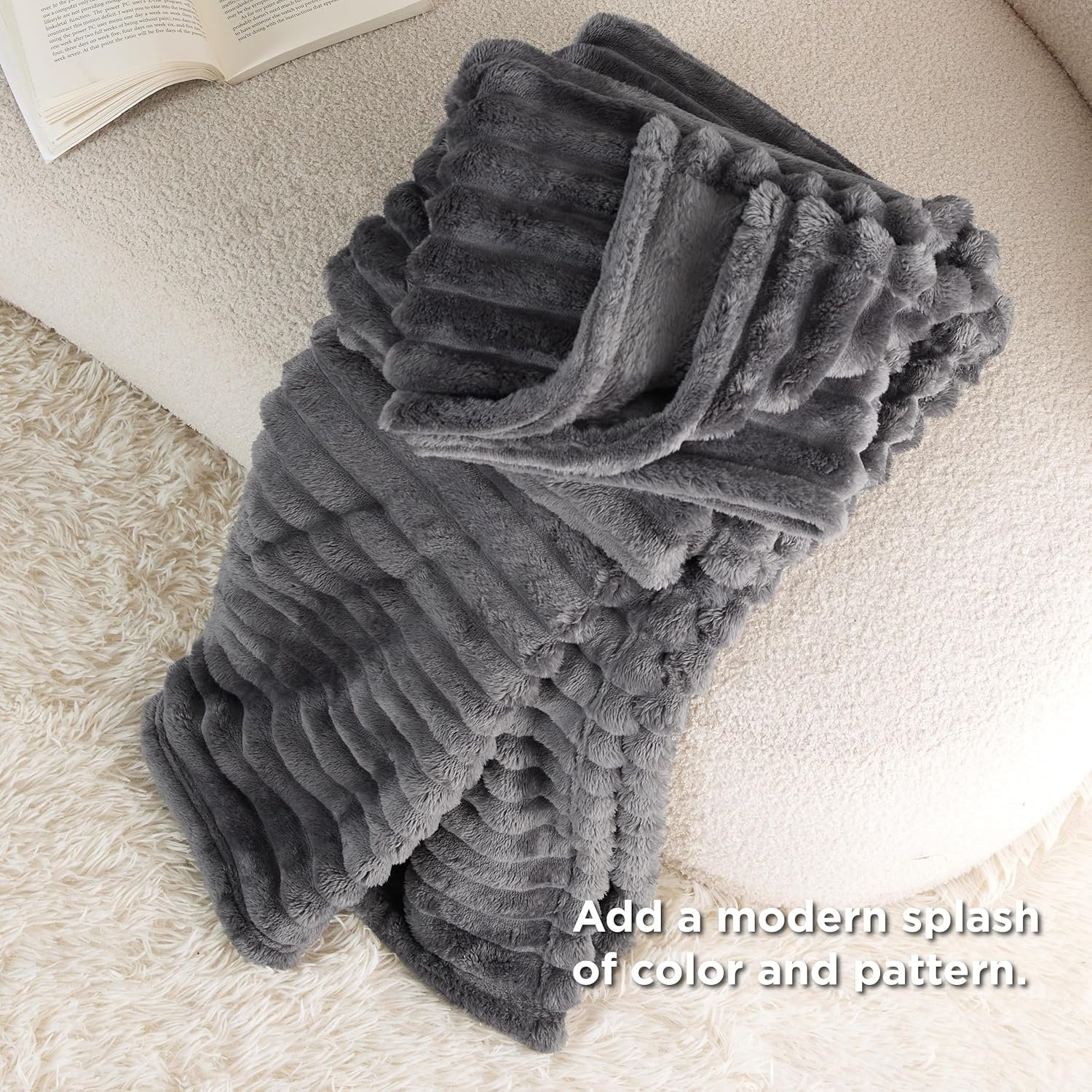 Exquisite Textures: This fuzzy blanket features a classic stripe pattern that creates an underlying unity to coordinate with your room’s decor.