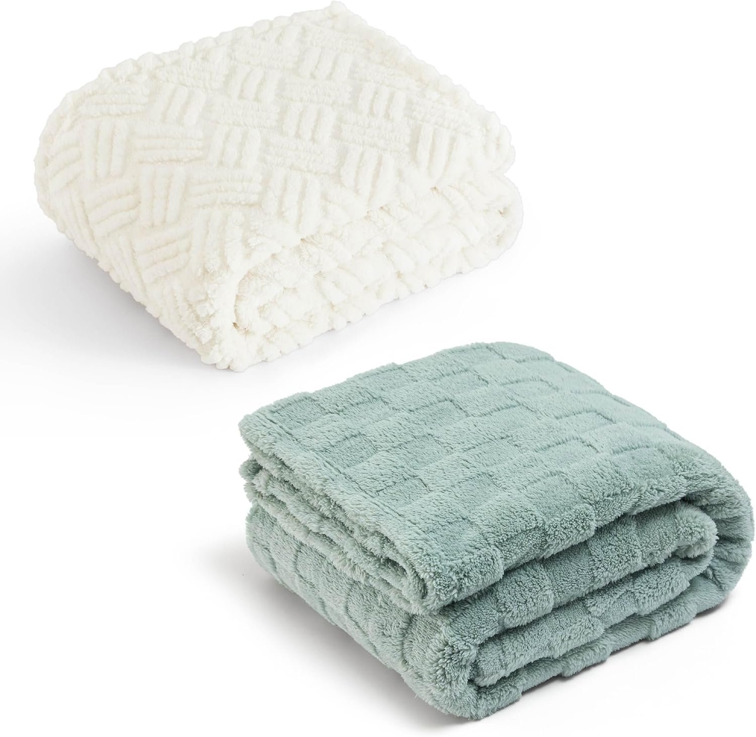 Bedsure Sage Green Fleece Blanket for Couch&White Throw Blanket for Couch,50×60 Inches