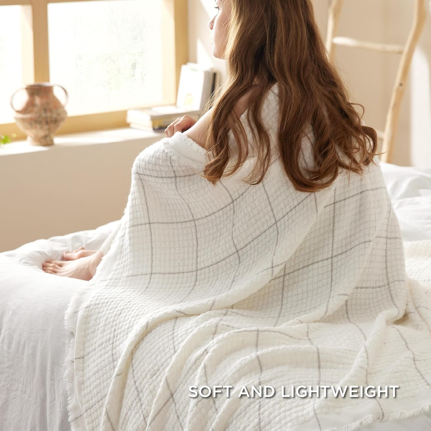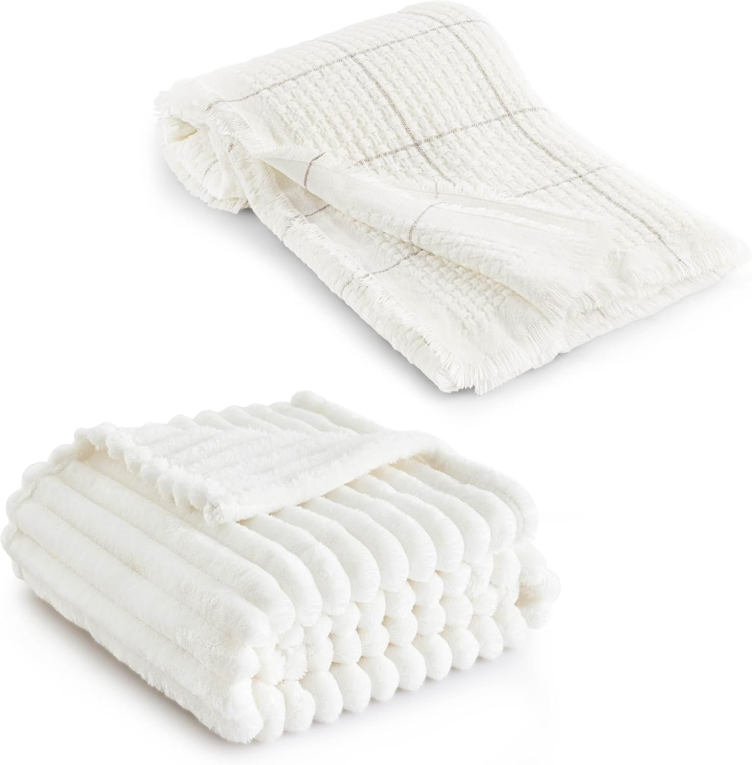 Bedsure Woven Throw Blanket for Couch and Fleece Throw Blanket Cream