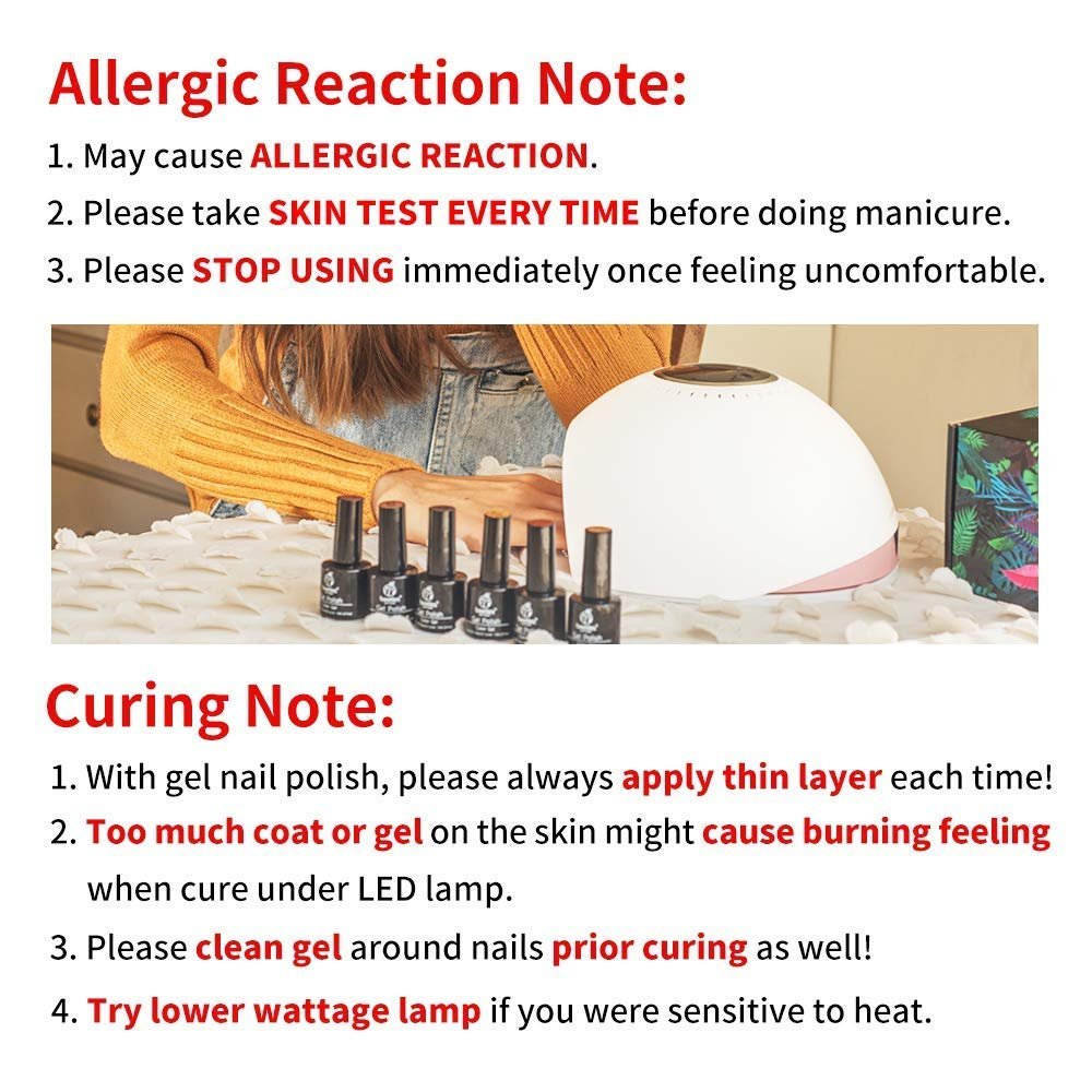 WARNING: May cause an allergic reaction. If you have sensitive skin, we recommend using this item in combination with Liquid Peel off Latex Tape. The Liquid Peel off Latex Tape can help minimize direct contact between the gel and your skin, reducing the likelihood of allergic reactions. Additionally, the spill-proof adhesive can assist in achieving better nail art results. Please note that this product does not include Liquid Peel Off Latex Tape, which needs to be purchased separately.