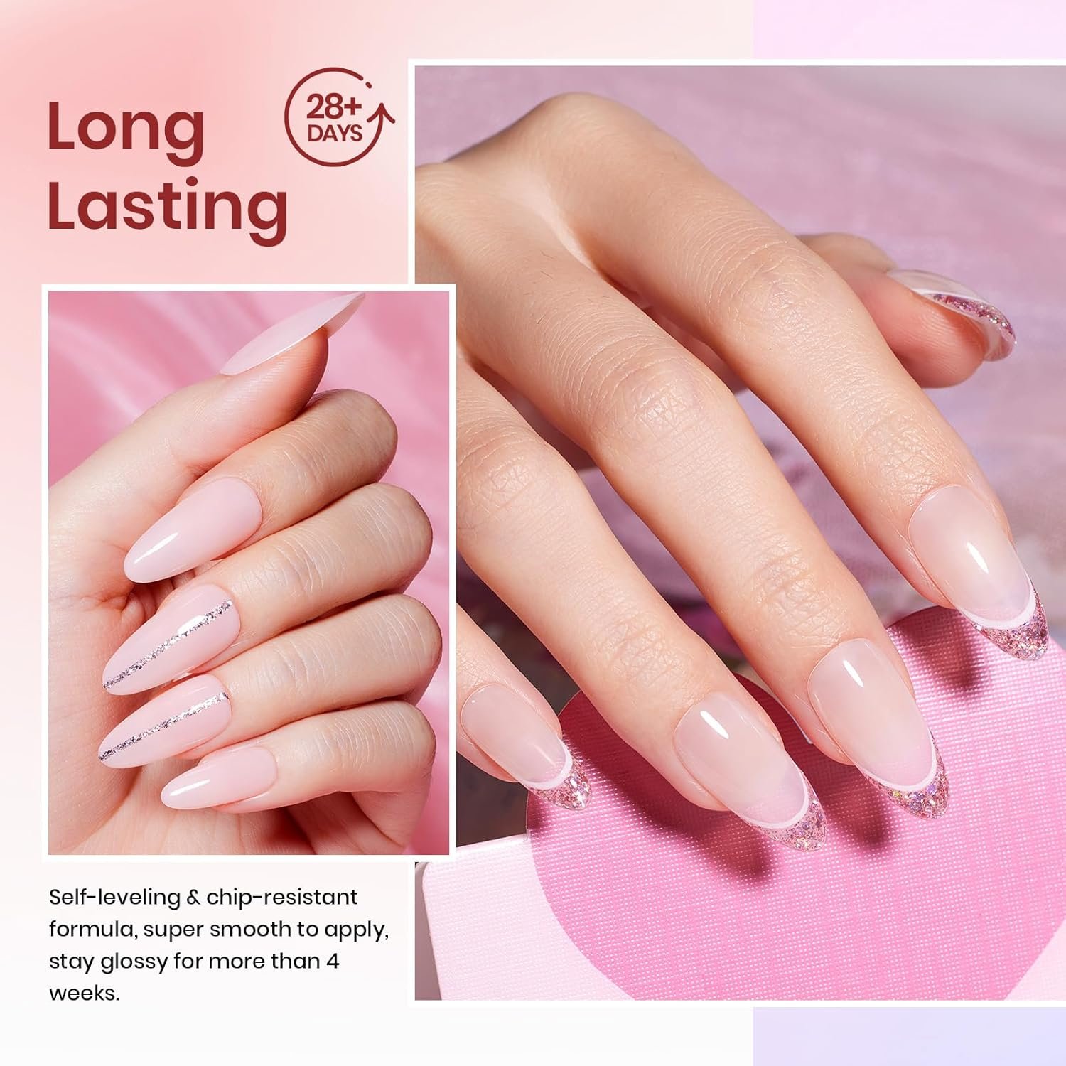 Beetles Jelly Gel Nail Polish (6*7.5ml / 6*0.25fl.oz): We have put together the top 6 trendiest new colors of jelly gel nail polish for the year 2024! We studied the upcoming color trends closely so you can display a colorful, stylish, modern manicure every time for the holidays! This sheer transparent jelly color gel is perfect for nail lovers with different skin tones. These jelly pink gel polish set can be used to create various nail styles, such as French nails and swirl nails.
