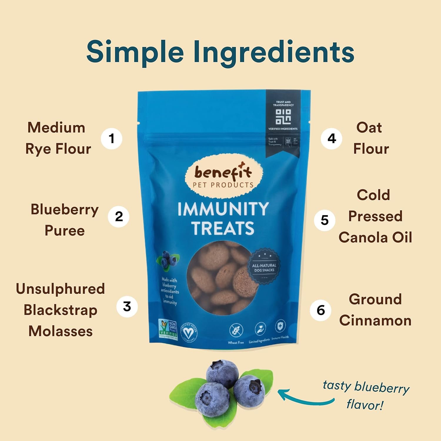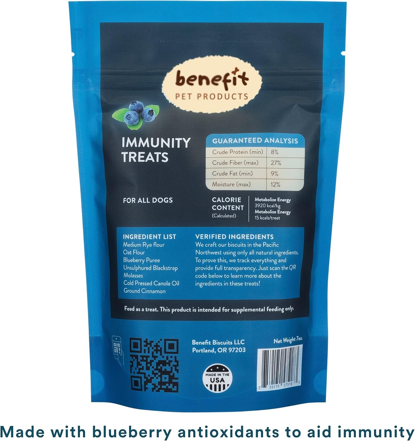 Benefit Biscuits, All Natural Dog Treats, Certified Vegan, Non GMO, Wheat Free, Healthy Dog Biscuits, Made in USA (Blueberry, Regular Bag (7oz))