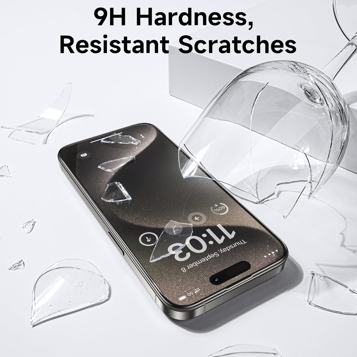 Anti-Drop: The iPhone 15 Pro Max screen protectors are made of 9H tempered glass, effectively protects your iPhone, reducing the chance of screen breakage and scratches