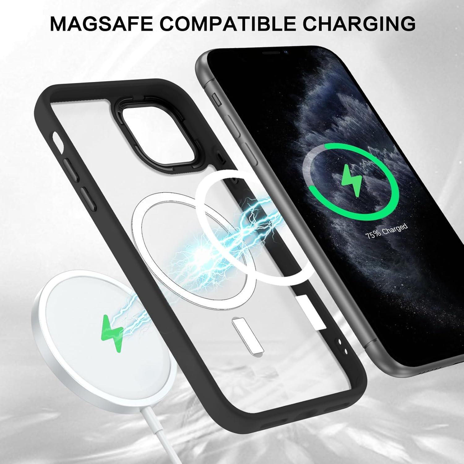 ♛【Compatible with MagSafe Accessories】 This iPhone 11 Pro Phone Case, with a built-in magnetic ring that aligns perfectly with MagSafe chargers and other Qi-certified chargers, offers a strong attach experience and faster wireless charging. This iPhone 11 Pro Case can be firmly attached to all MagSafe accessories like MagSafe charger, wallet, battery pack, car mount. However, it can’t stick to metal surfaces like fridges, steel, etc.