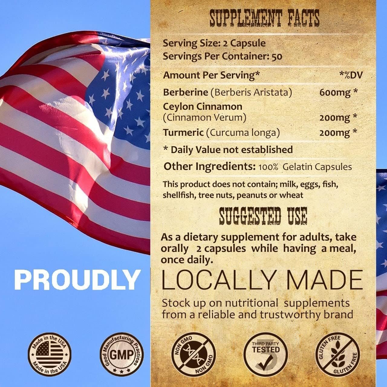 Quality is Our Priority – Herbalicious is committed to the safety of dietary supplements; Our Cinnamon plus turmeric capsules are non-GMO; gluten free; sugar free; and contain no artificial flavor or sweetener. 100 capsules per bottle with 1000mg Berberine per capsule