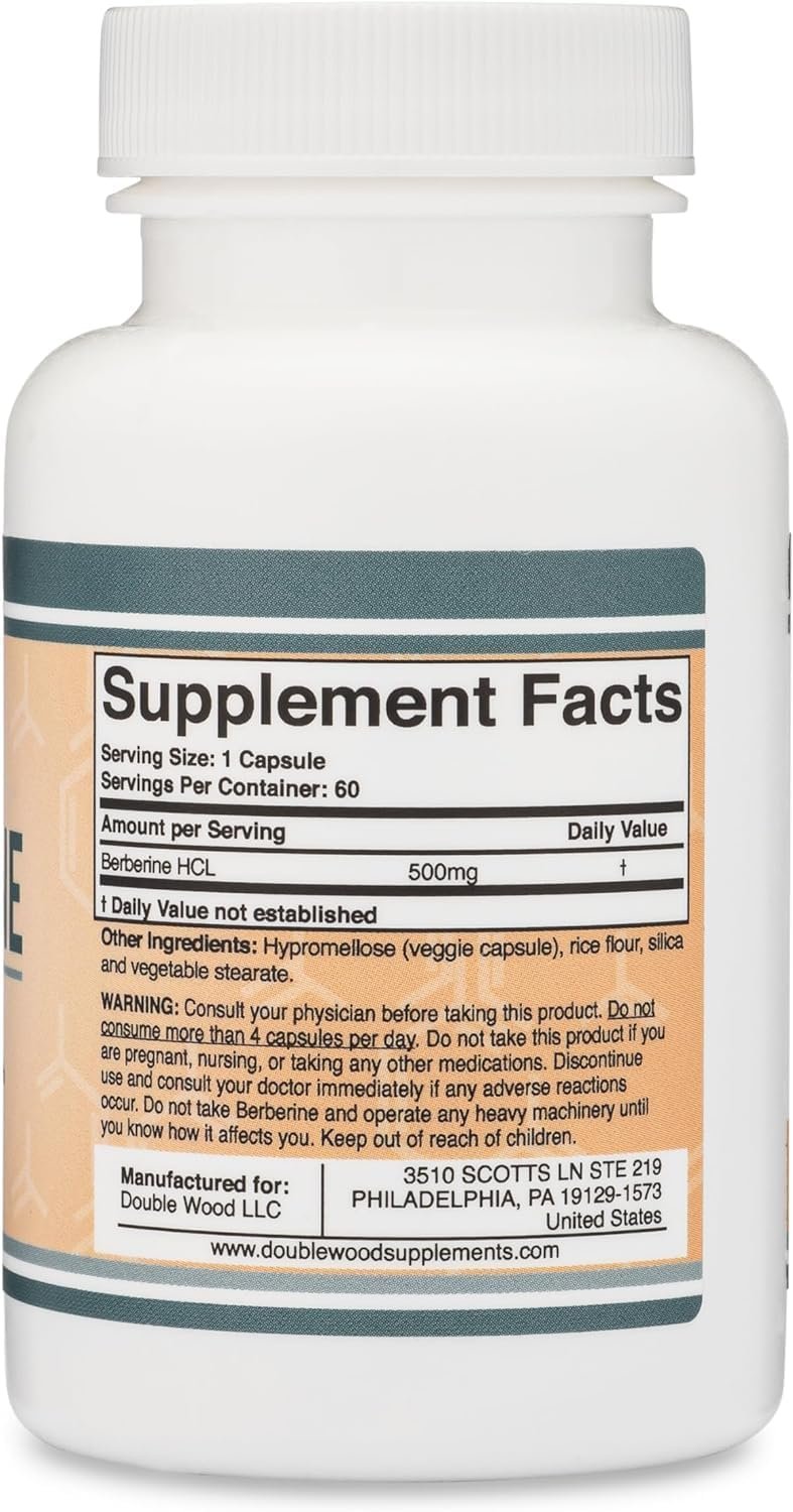 TWO MONTH SUPPLY: Double Wood’s Berberine contains 60 convenient single dose capsules, each with 500mg. Unlike competitors, we offer a convenient single capsule serving