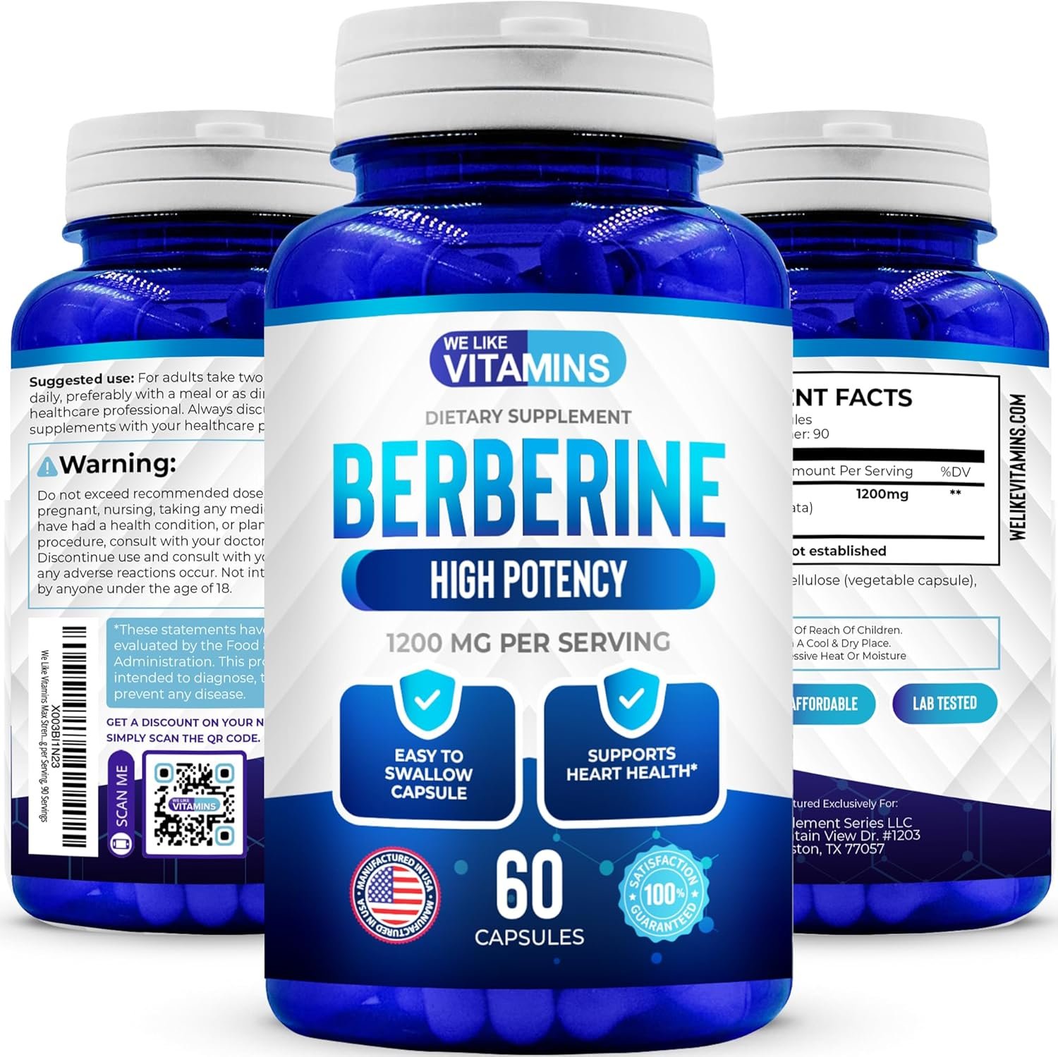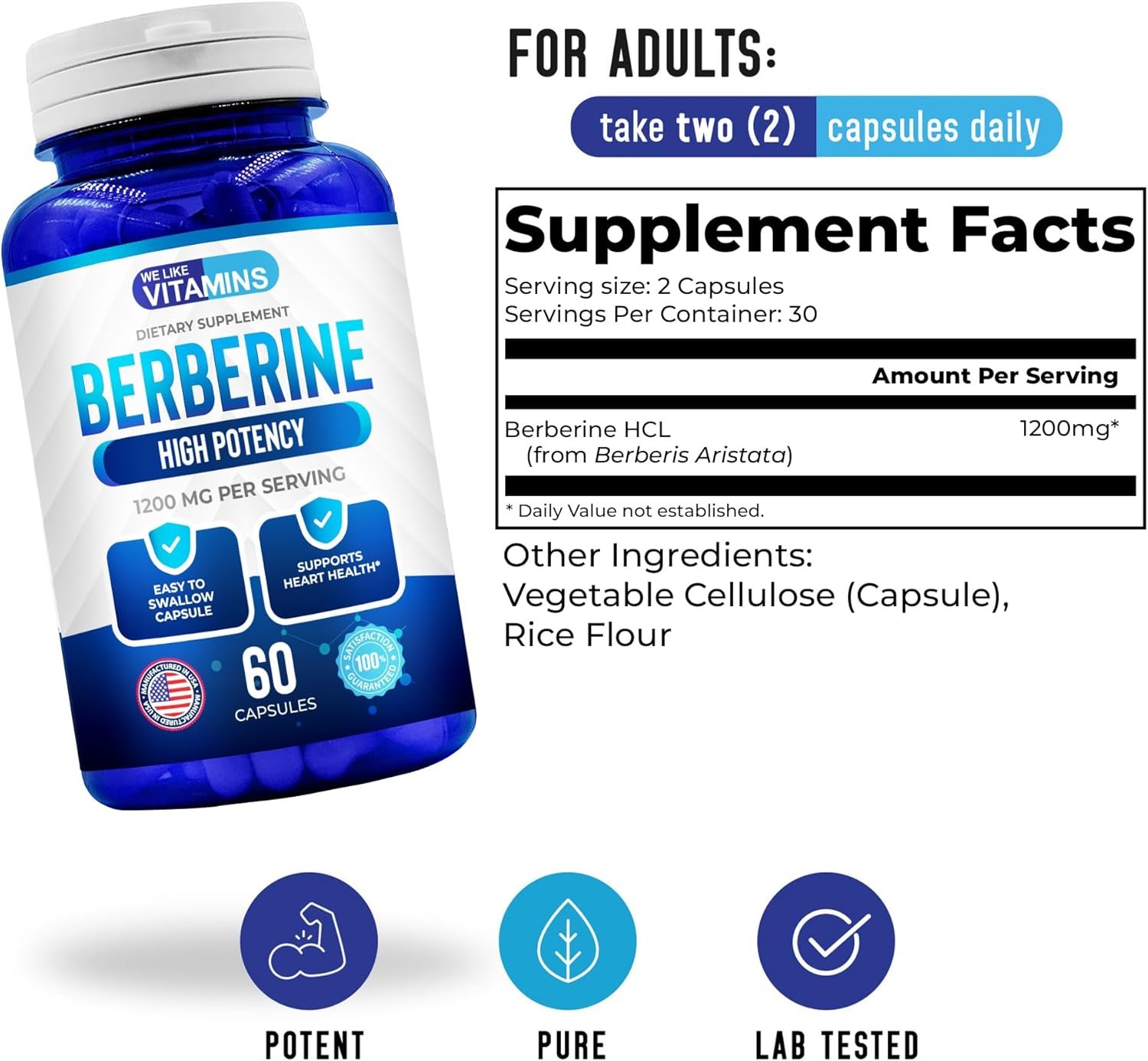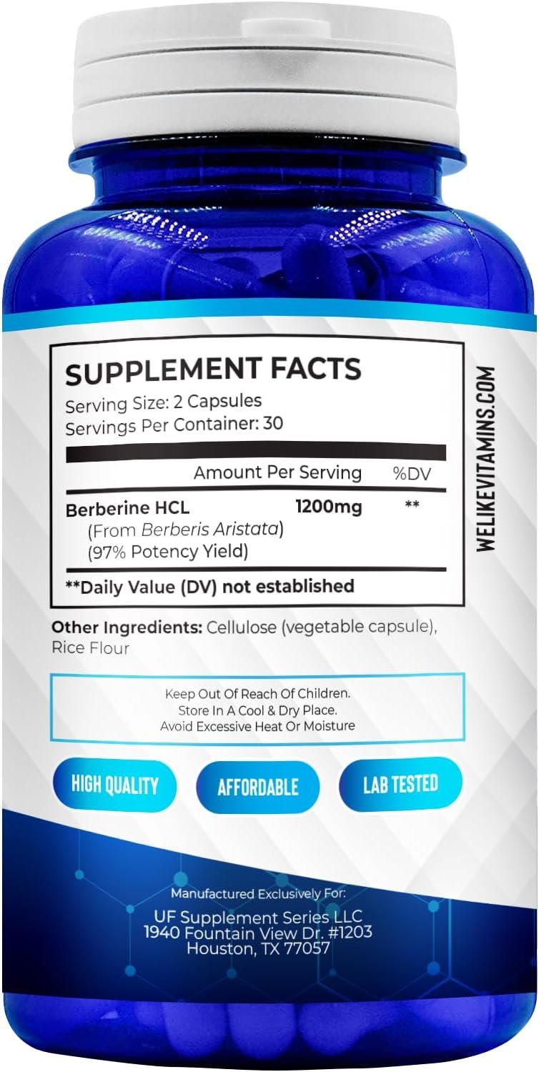 HIGH POTENCY DAILY DOSE – Every serving of 2 Berberine capsules delivers 1200mg of Berberine Hydrochloride. Berberine is a chemical found in several plants: barberry, goldenseal, goldthread, Oregon grape, Phellodendron and tree turmeric.