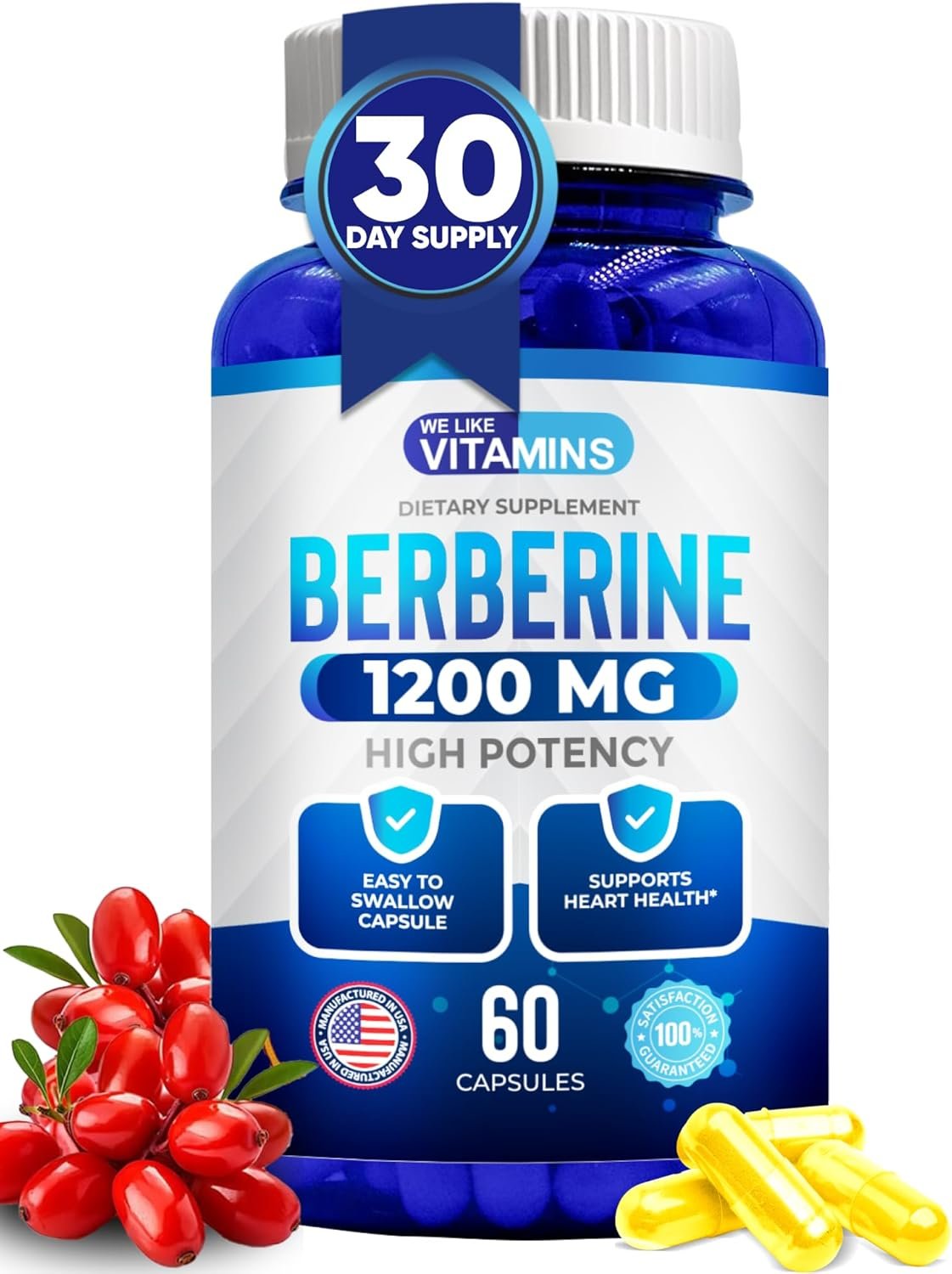 BERBERINE HCL – 60 CAPSULES – 1 MONTH SUPPLY – Each bottle contains 60 Capsules of berberine supplement weight loss for a full 30 Day Supply.