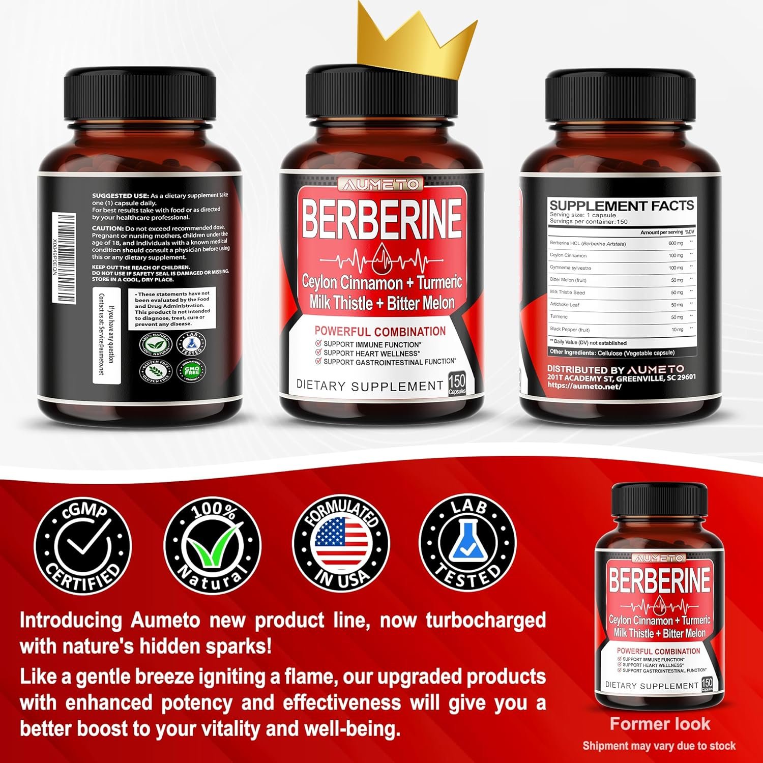 Berberine Supplement with Ceylon Cinnamon Turmeric Milk Thistle Bitter Melon