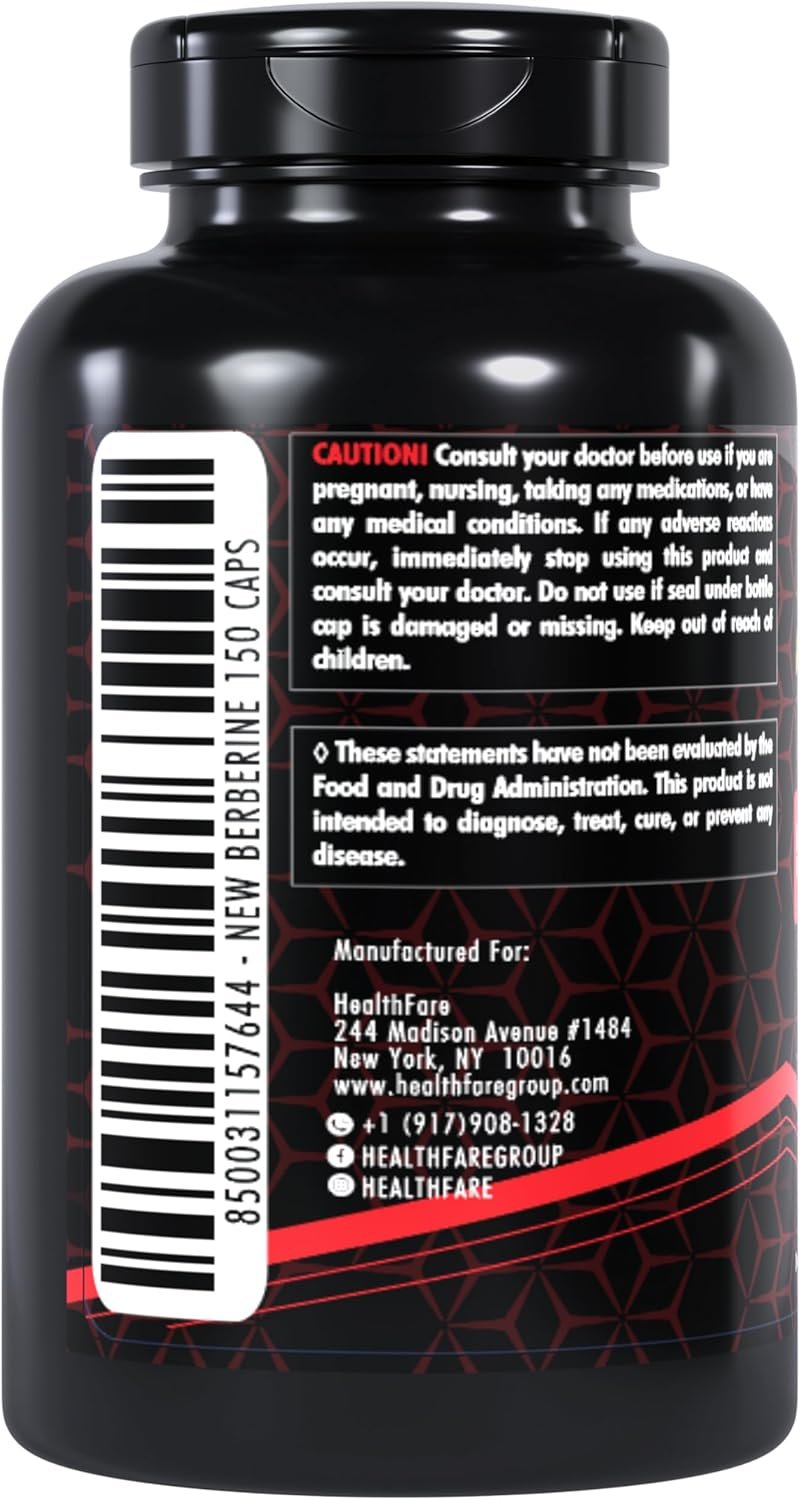 Discover HealthFare’s unique blend of Berberine with Ceylon Cinnamon, meticulously designed to support overall health. Each bottle contains 150 capsules, with a potent 5000mg dose in each serving, ensuring a powerful impact. Our Berberine supplement is enhanced with the natural goodness of Ceylon Cinnamon, known for its antioxidant properties and blood regulation benefits. Crafted for those who seek a natural approach to wellness, this supplement is an essential addition to your daily health regimen. Manufactured with the highest standards, HealthFare ensures quality and efficacy in every capsule.