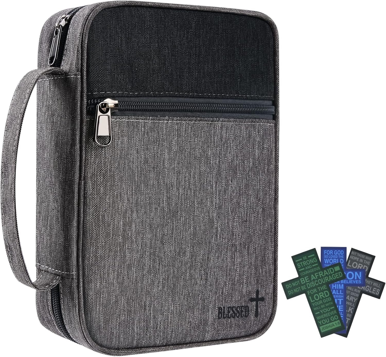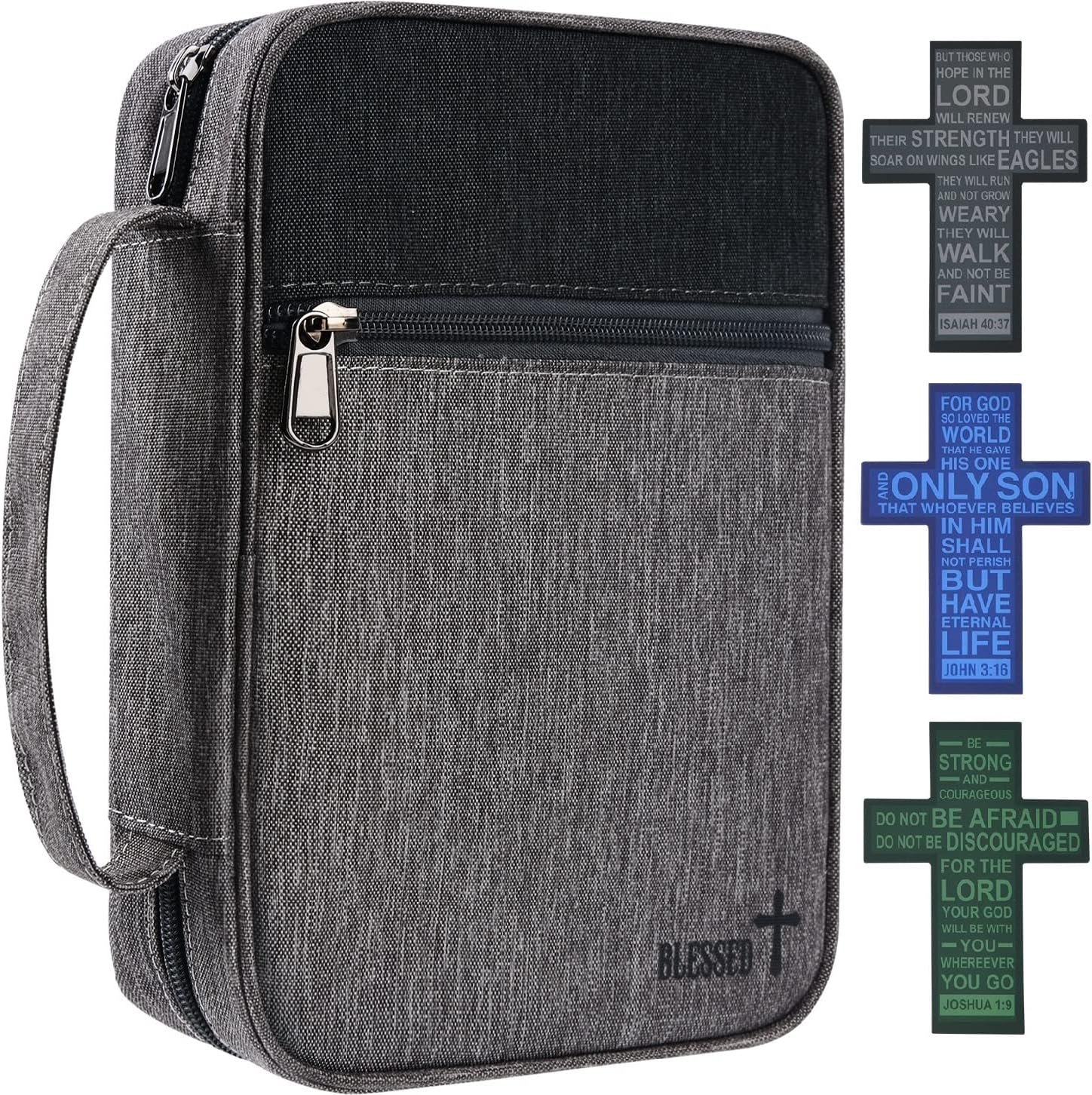 Bible Cover Case with Scripture Carrying Book Case Church Bag with 3 Cross Bookmarks Protective with Handle, Zipper Pockets for Men
