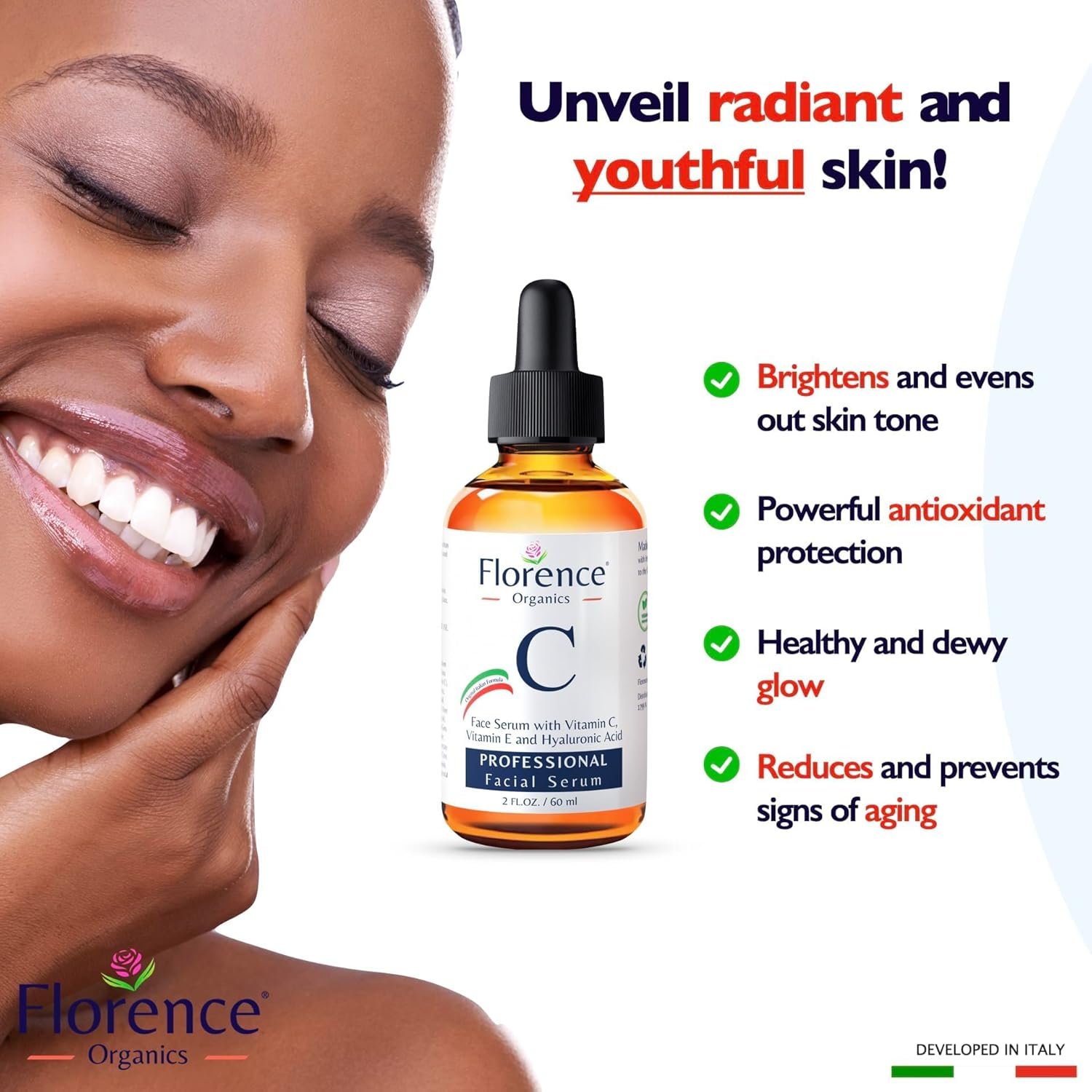𝗔𝗡 𝗔𝗟𝗟-𝗜𝗡-𝗢𝗡𝗘 – 𝗔 𝗧𝗥𝗨𝗘 𝗠𝗨𝗟𝗧𝗜-𝗧𝗔𝗦𝗞𝗘𝗥: Use a Few drops of Florence Super C Serum and hyaluronic acid morning & night on your face, neck, and even around your eyes. This multi-tasking serum combines several products into one to nourishes your skin with a powerful combination of skin ingredients that help you achieve your skincare goals. Perform a patch test of the product 24 hours before regular application.
