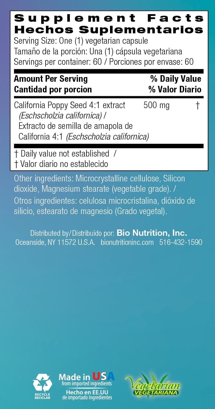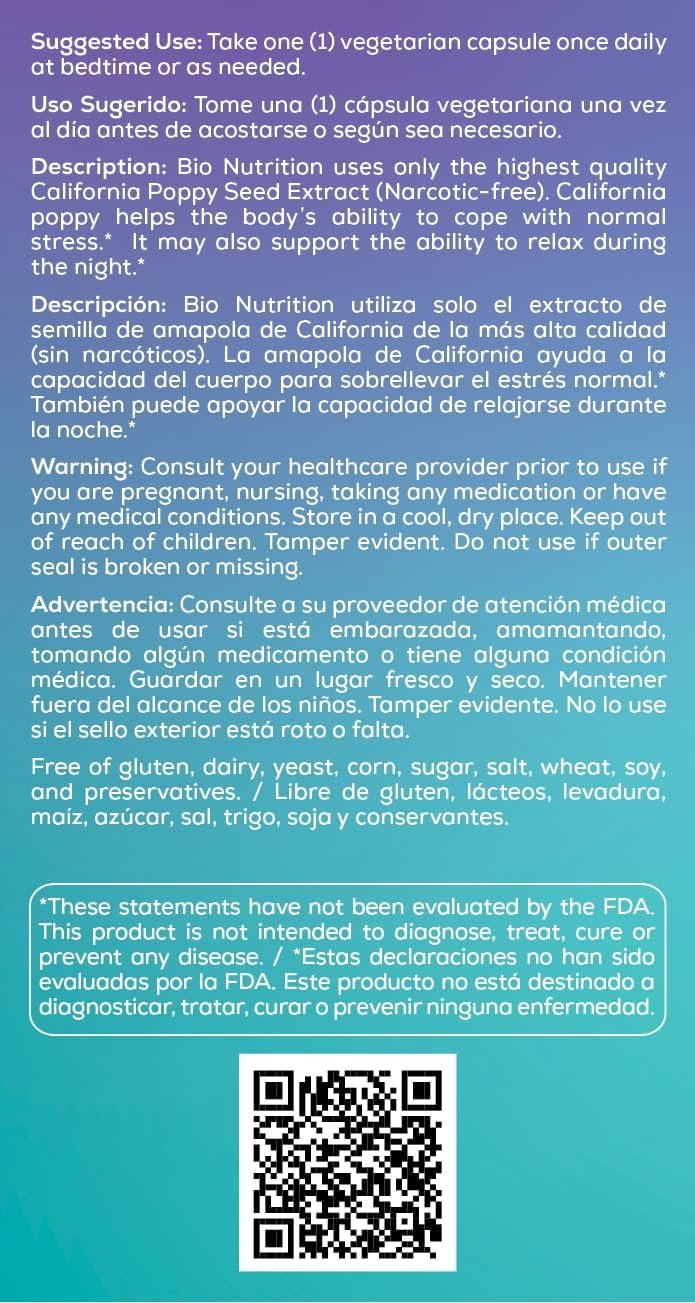 Bio Nutrition California Poppy has been used as a natural remedy to promote relaxation.