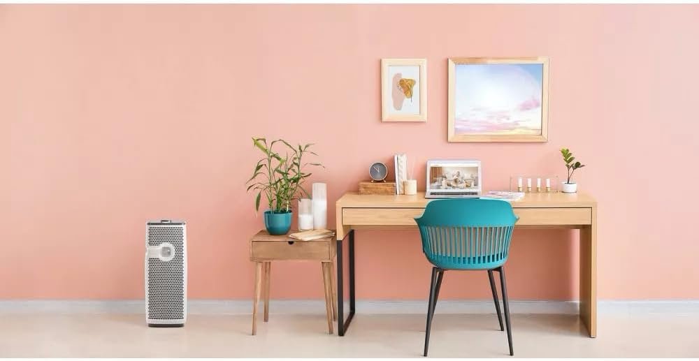 FEATURES: Breathe in cleaner, fresher air every day. This home air purifier provides optimal coverage for medium-sized rooms up to 116 sq. ft. The slim, space-saving design is perfect for dorms, bedrooms, family rooms, or any living space.