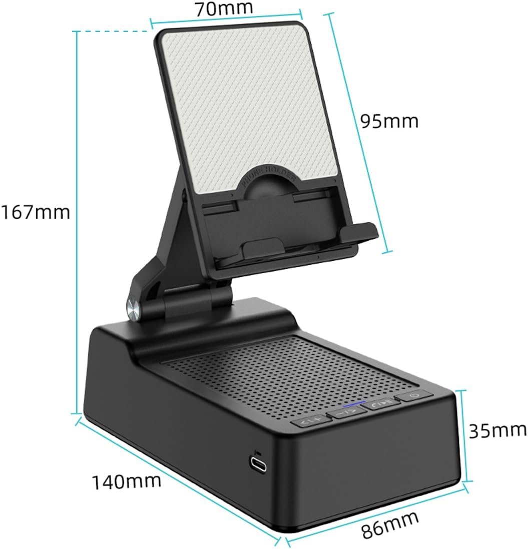 Cell Phone Stand with Wireless Bluetooth Speaker, Adjustable Height & Angle, you can freely adjust to choose the most comfortable viewing angle.