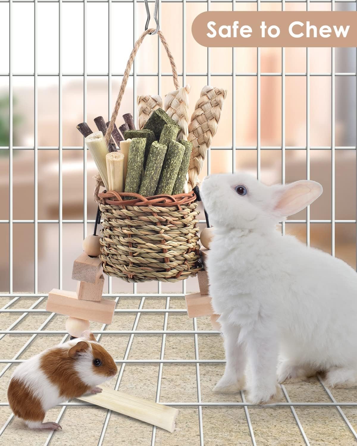 ENTERTAINMENT & EXERCISE: Guinea pigs chews are well made and resistant to bite. Hide the snacks that small pets like in the basket, let them enjoy the fun of foraging to reduce damage, such as chewing cages and furniture. The perfect cage accessory for your pet