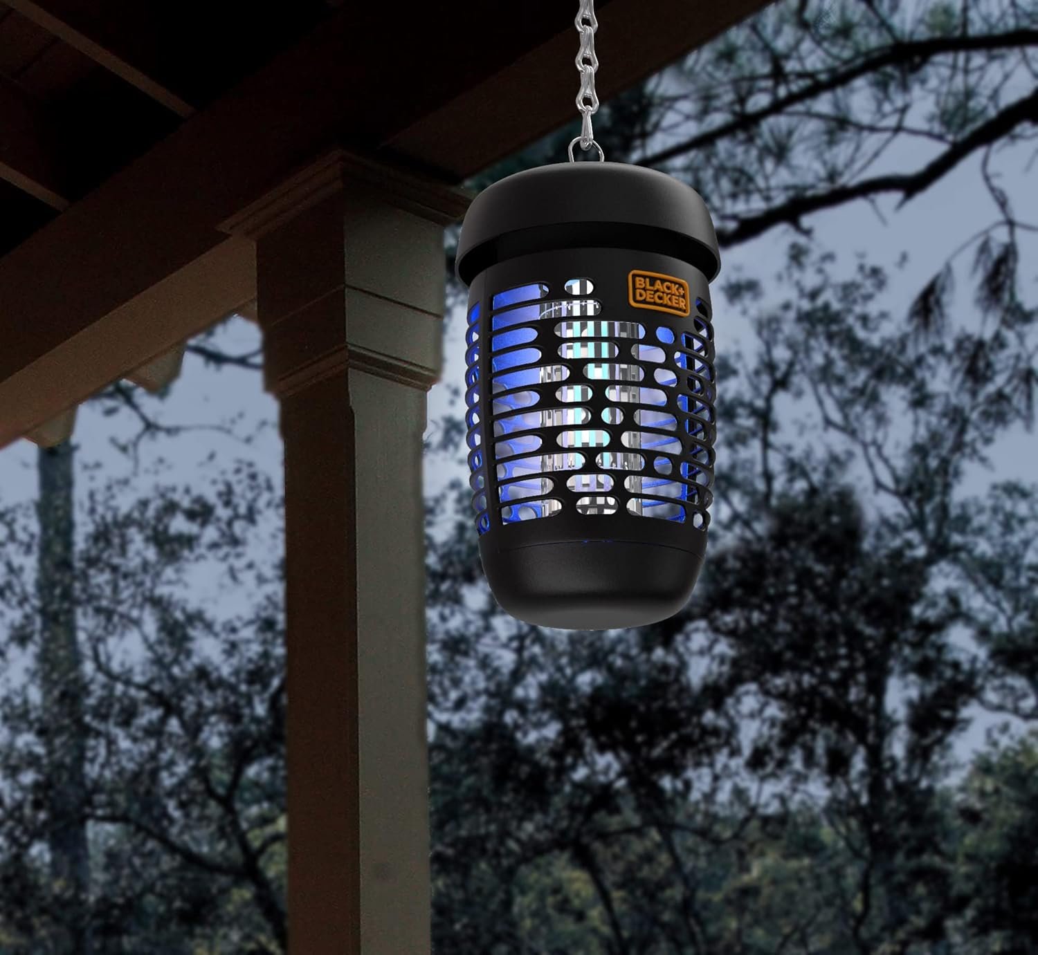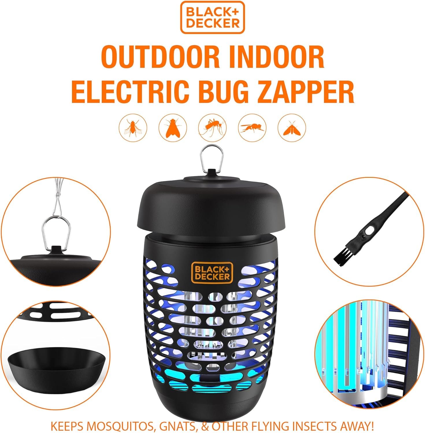 BLACK+DECKER Bug Zapper Electric Lantern with Insect Tray, Cleaning Brush, Light Bulb & Waterproof Design for Indoor & Outdoor Flies, Gnats & Mosquitoes Up to 625 Square Feet