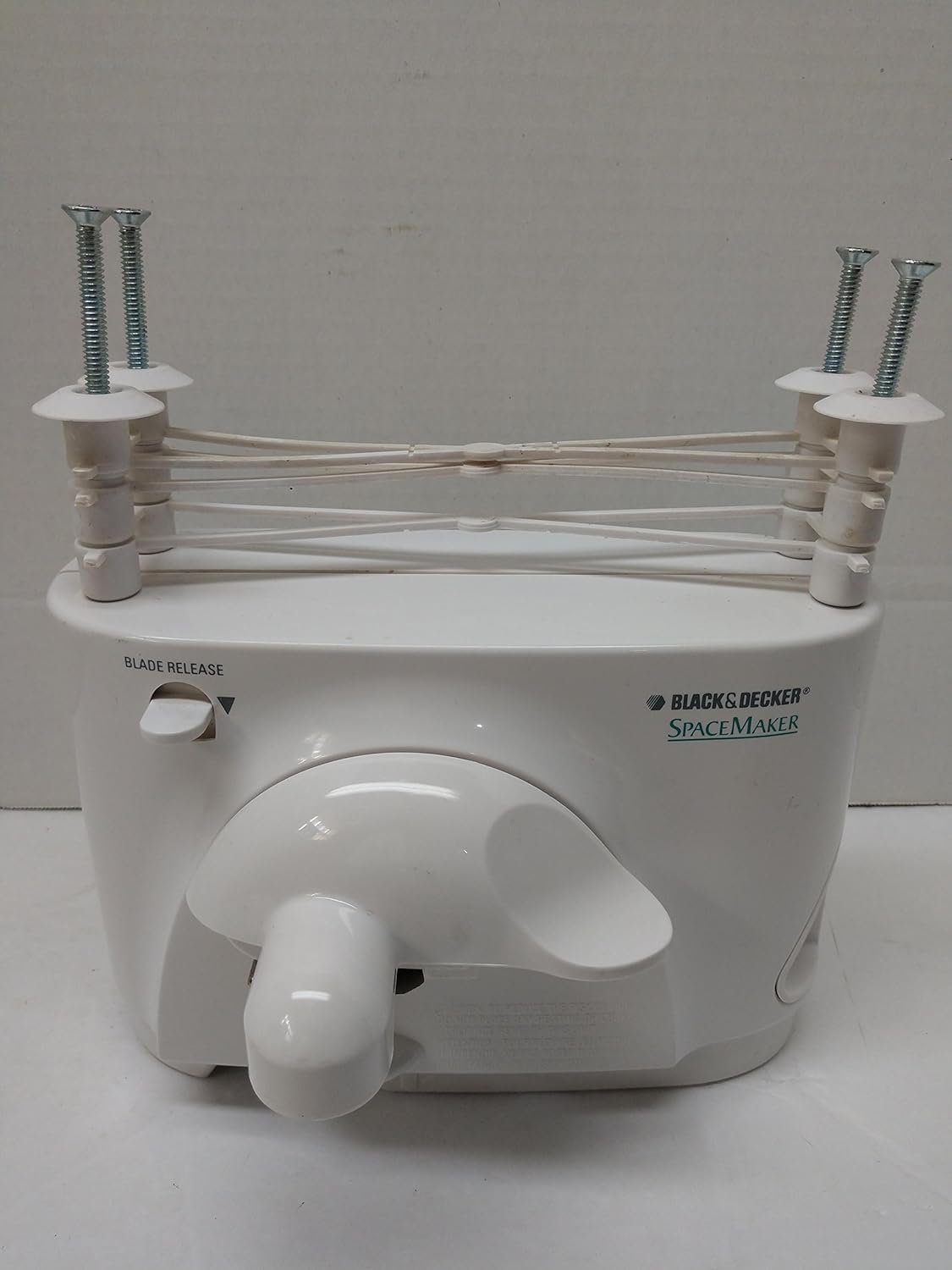 This Spacemaker Can Opener mounts under cabinets to save counter space and to accommodate big and tall cans. Operates hands free and has automatic shutoff. Power-pierce cutting blades release for easy cleaning. Built-in knife sharpener and bottle opener. Imported. 6-1/2Hx10Wx4D”.