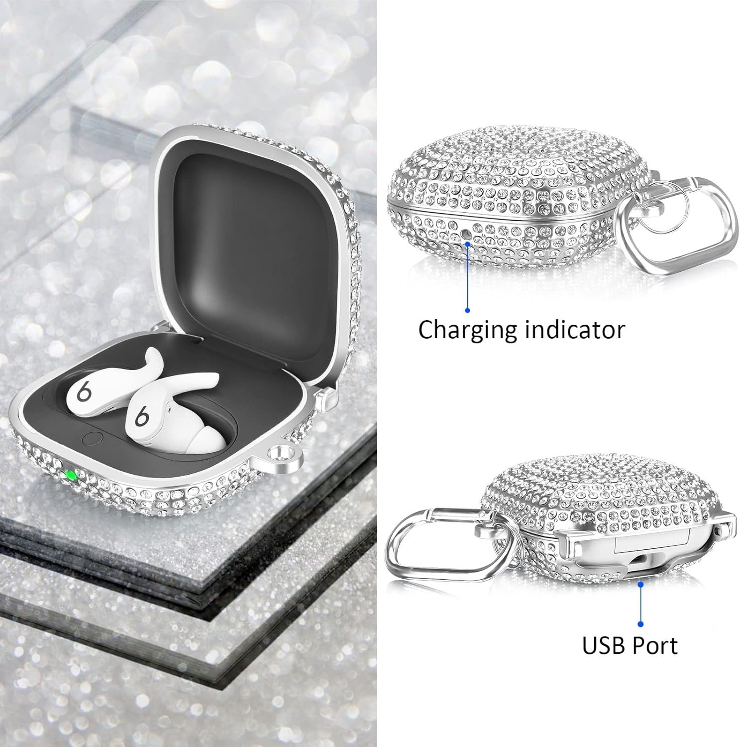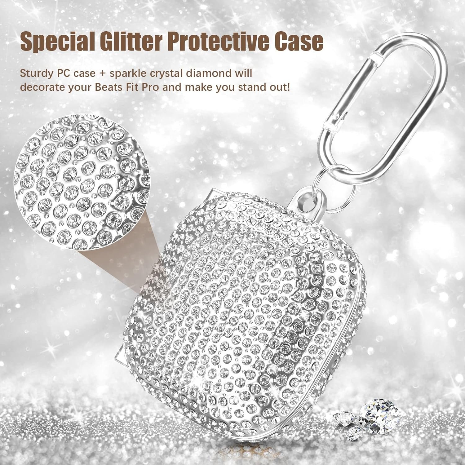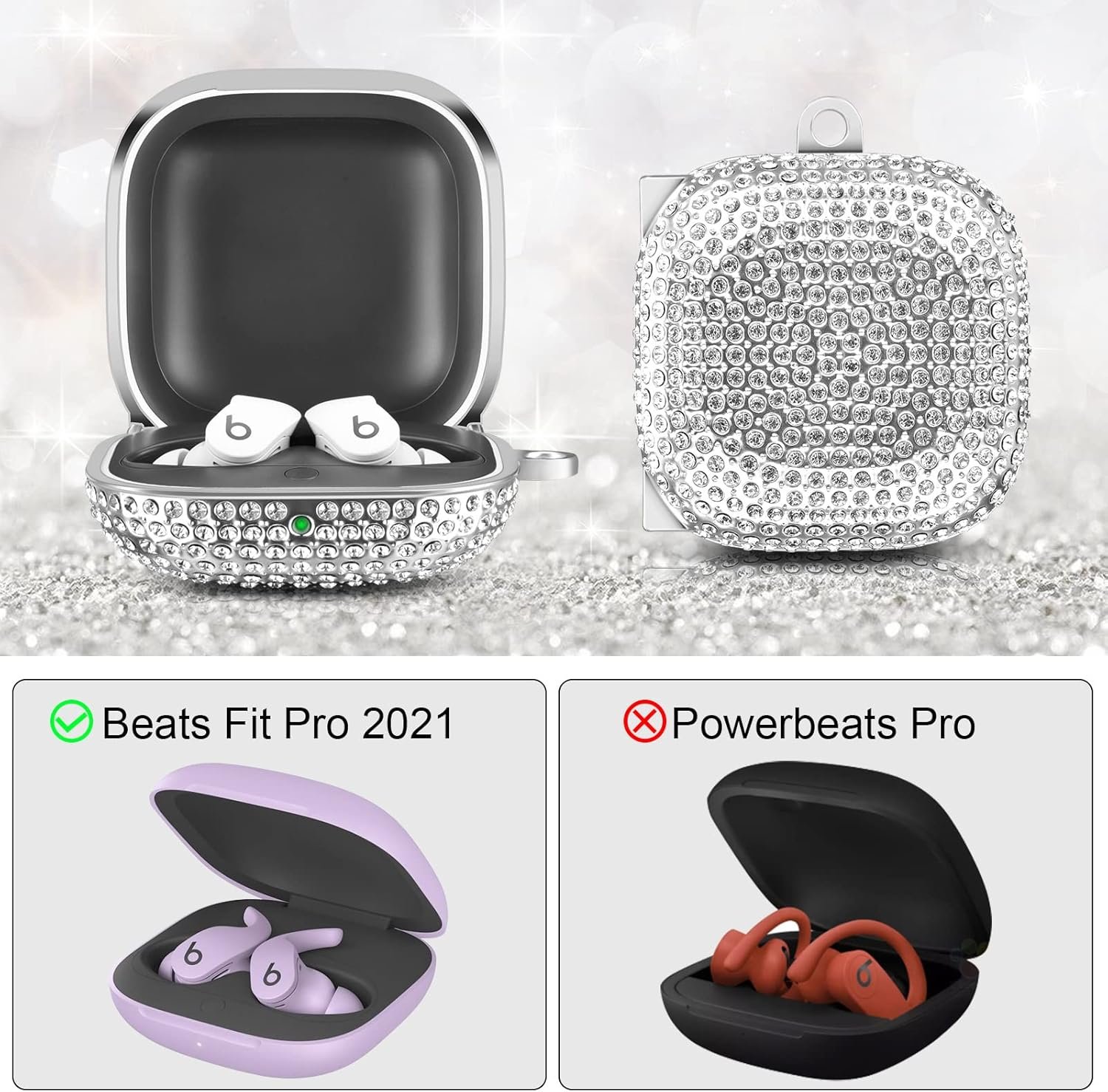 Upgrade Beats Fit Pro Case: High-density PC hard case material made each bling diamond firmly inlaid on the case cover, neat and shiny. Won’t fall out easily anymore. Only design for Apple Beats Fit Pro 2021 NOT fit for Powerbeats Pro