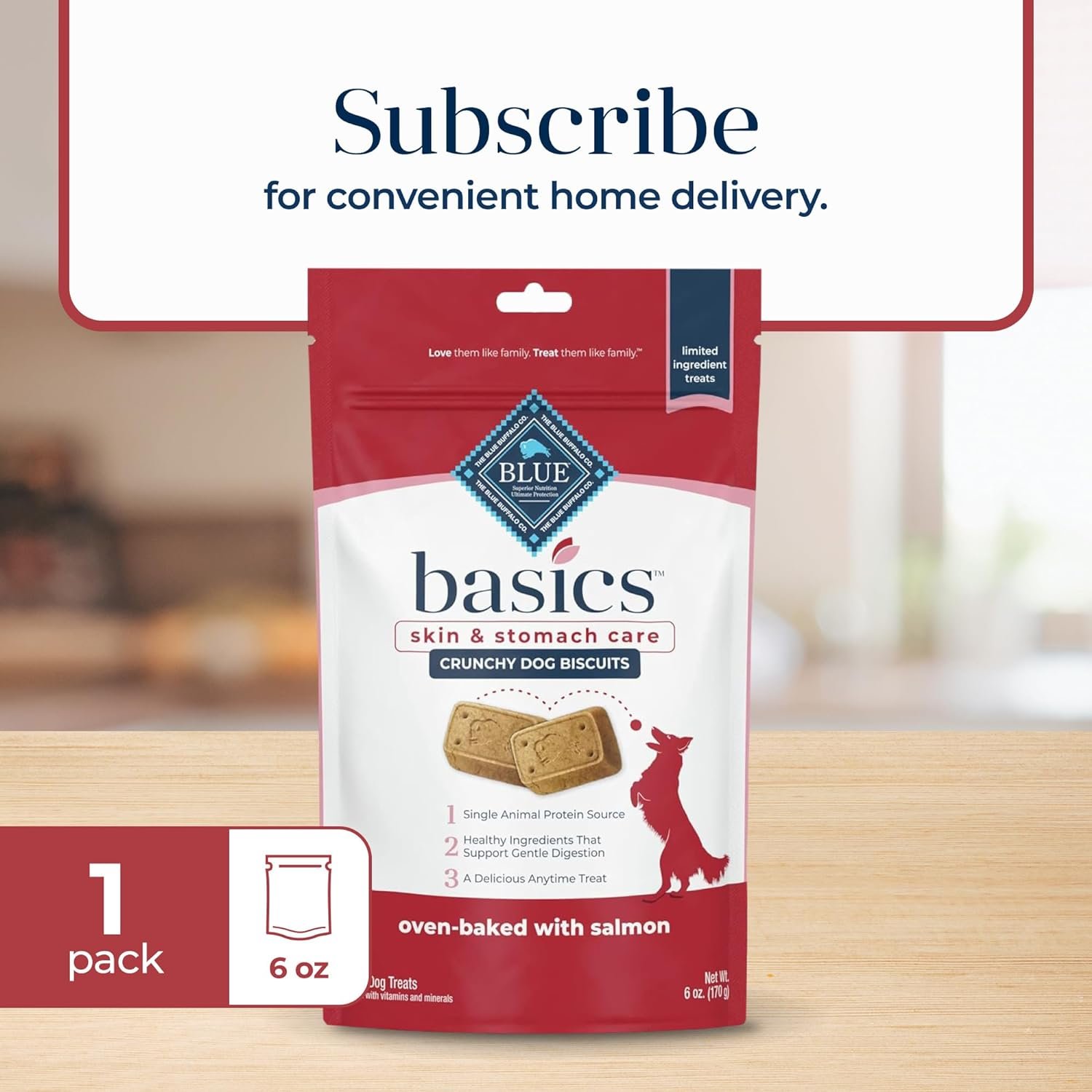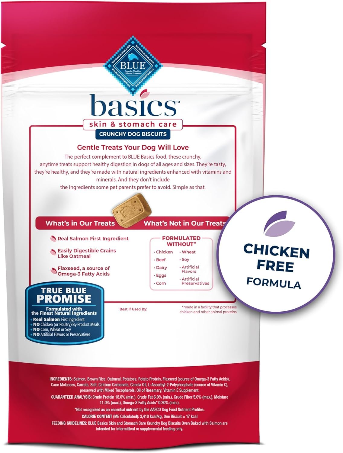 Blue Buffalo Basics Crunchy Dog Biscuits for Skin & Stomach Care, Limited Ingredient Diet Dog Treats, Salmon & Potato Recipe, 6-oz. Bag