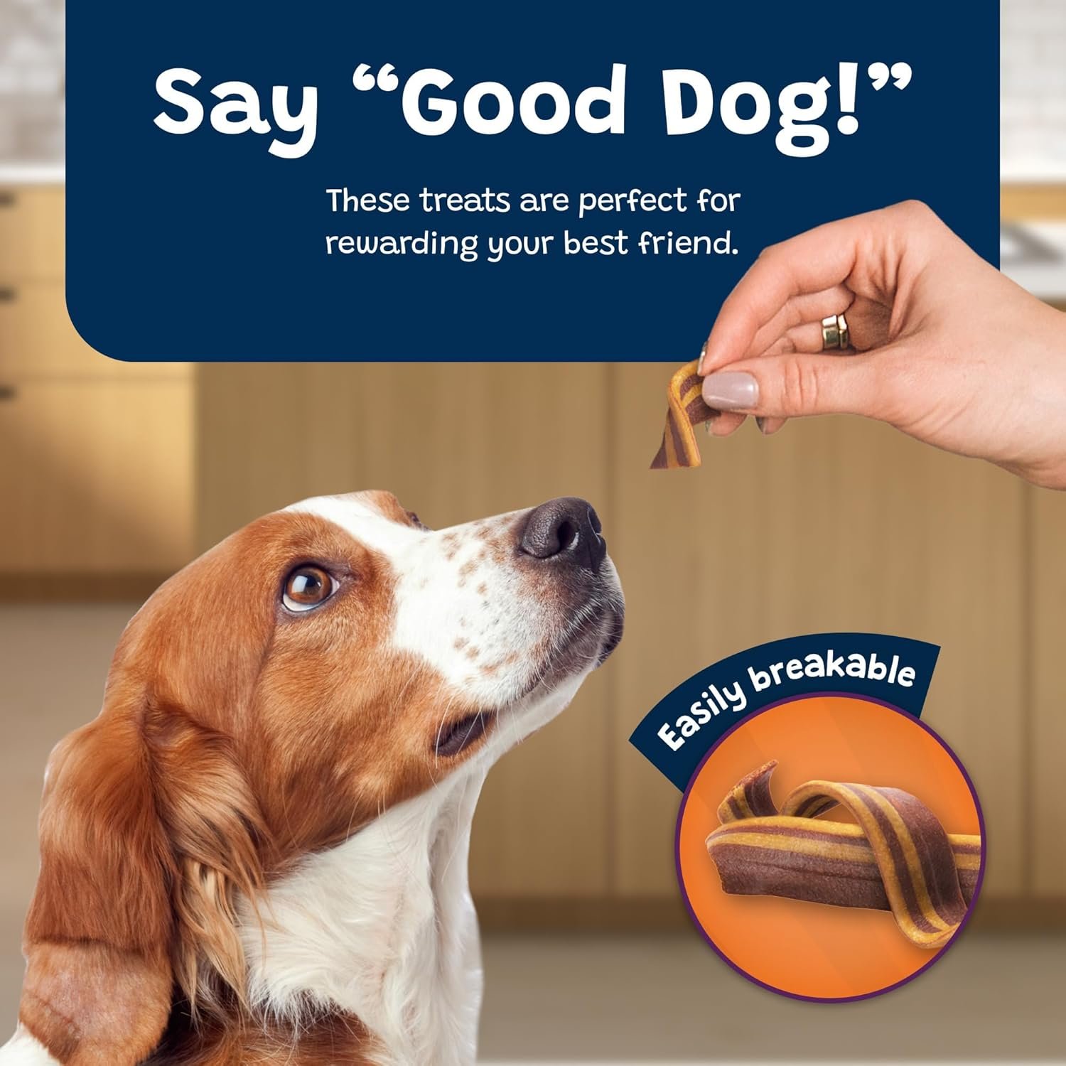 TENDER & MEATY: Watch their tail wag for these bacon-style dog treats with a soft and chewy texture.