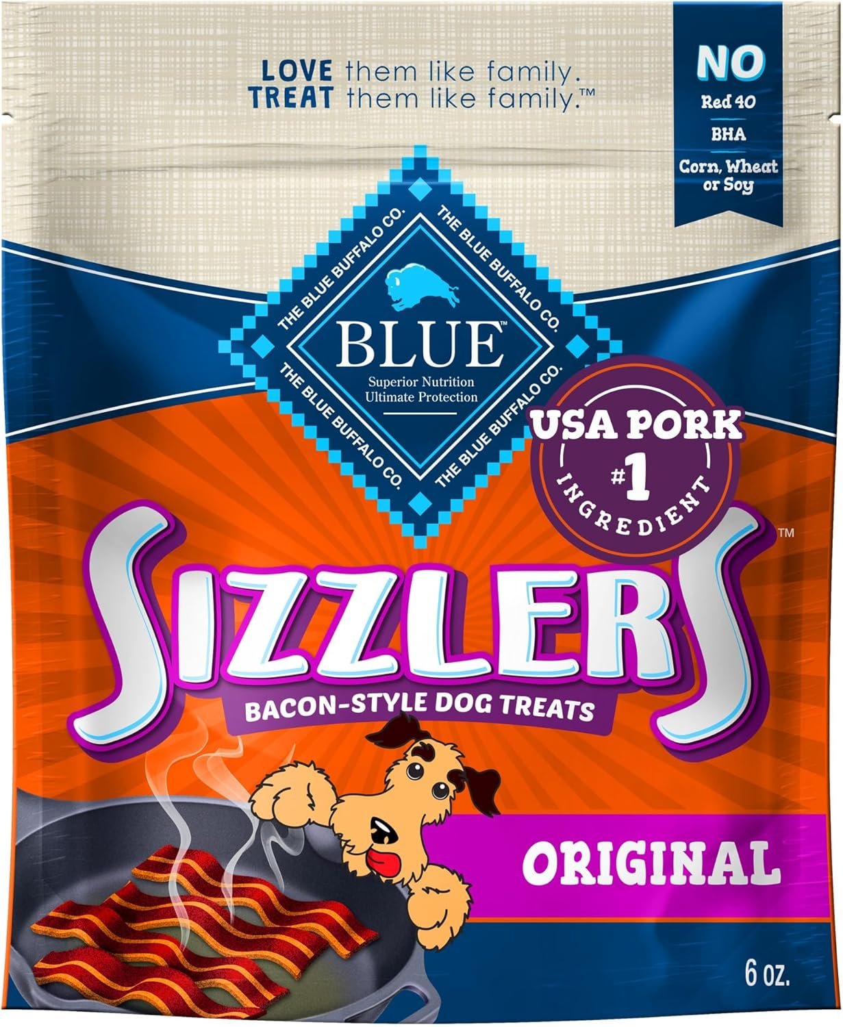 Blue Buffalo Sizzlers Natural Soft Dog Treats, Bacon-Style Soft-Moist Dog Treats with Real USA Pork, Original Flavor, 6-oz. Bag