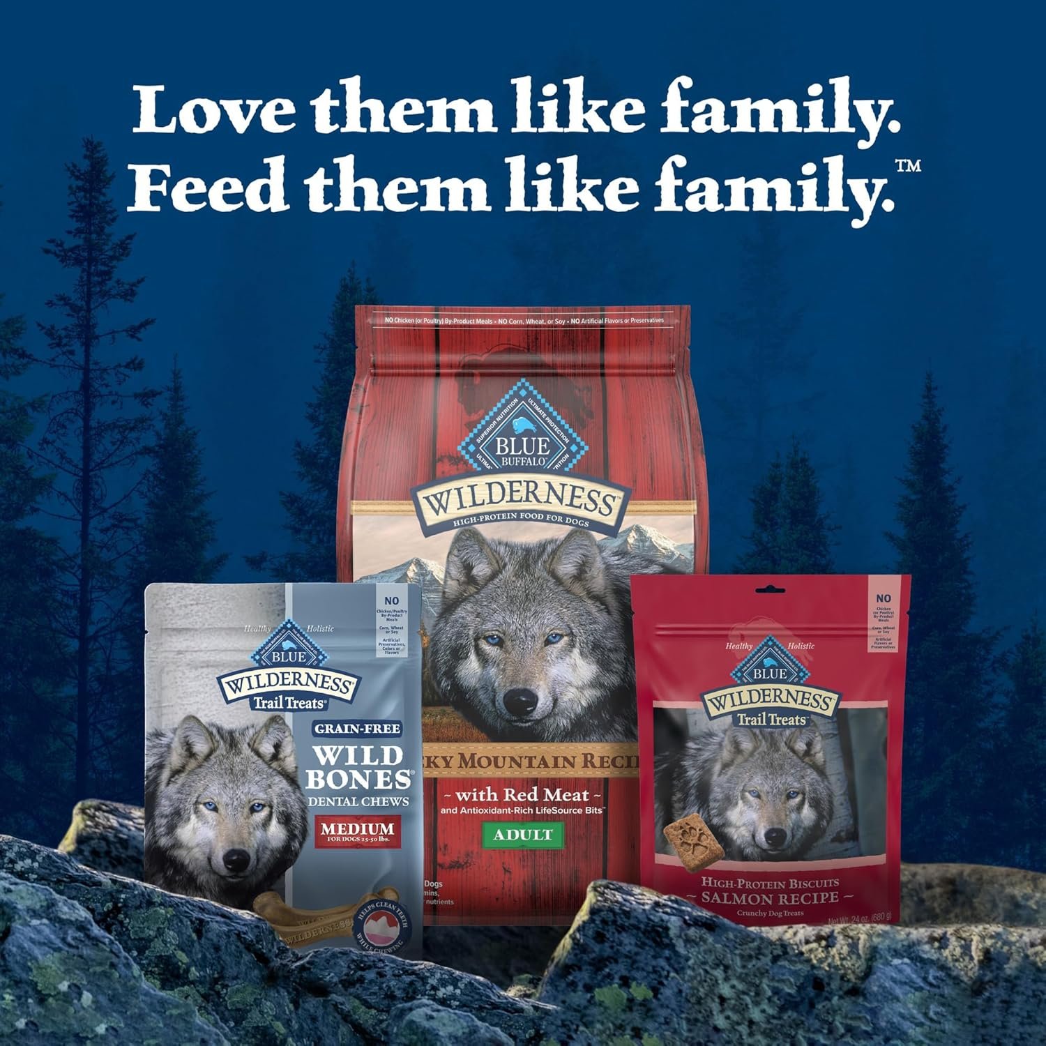 Contains: One (1) 10-oz. bag of BLUE Wilderness Trail Treats Wild Bones Medium Dental Chew Dog Treats