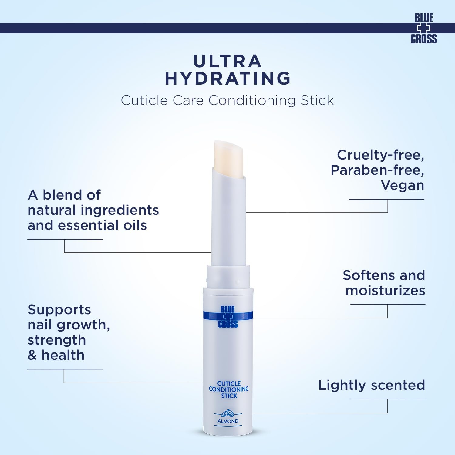 NATURAL INGREDIENTS: Blue Cross cuticle conditioning balm stick is enriched with a blend of natural ingredients and essential oils, Sunflower Seed Oil, Grape Seed Oil and Shea Butter to support nail growth, strength and health.